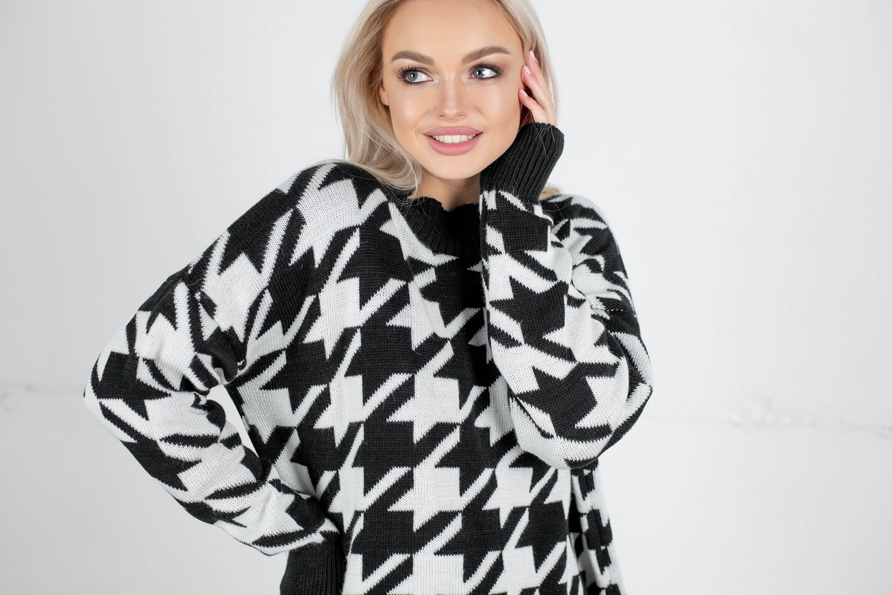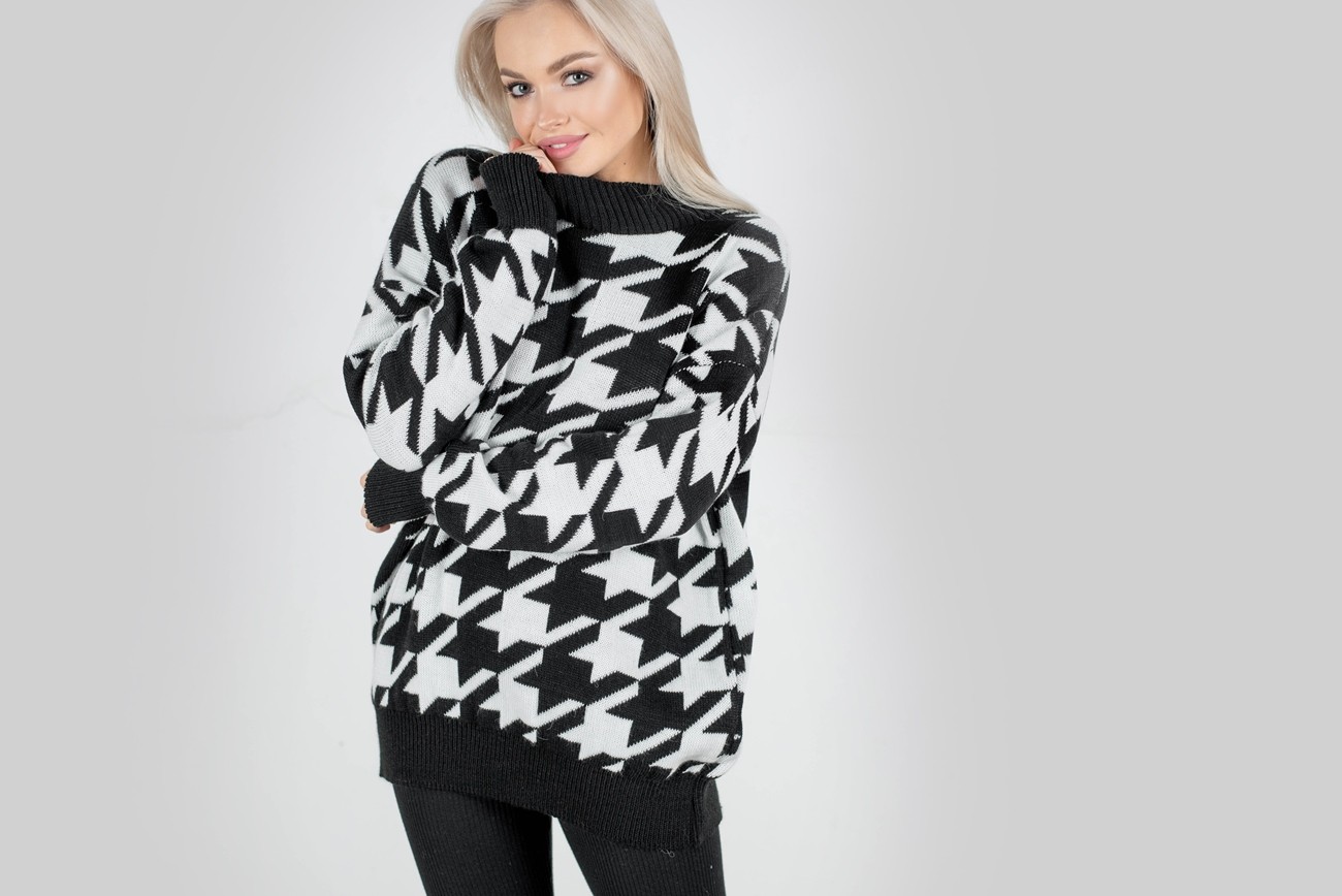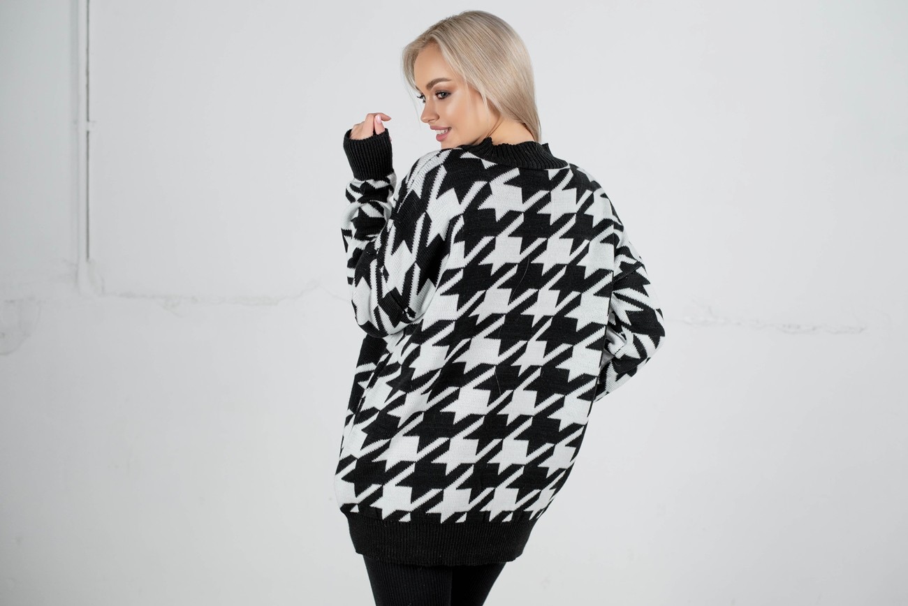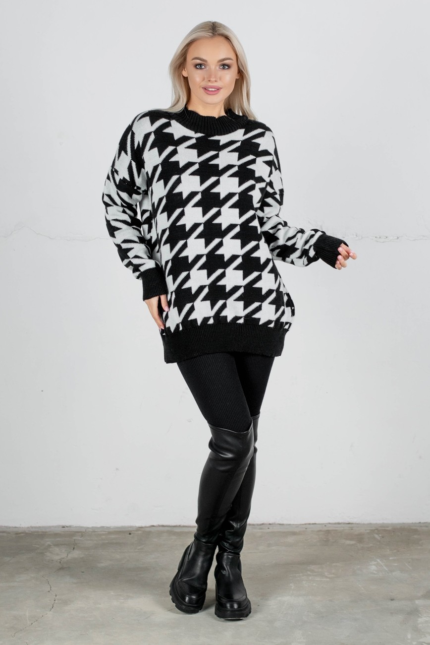 Свитер" Донна " - Гусиная лапка - шерсть - Oversize - Черный-белый