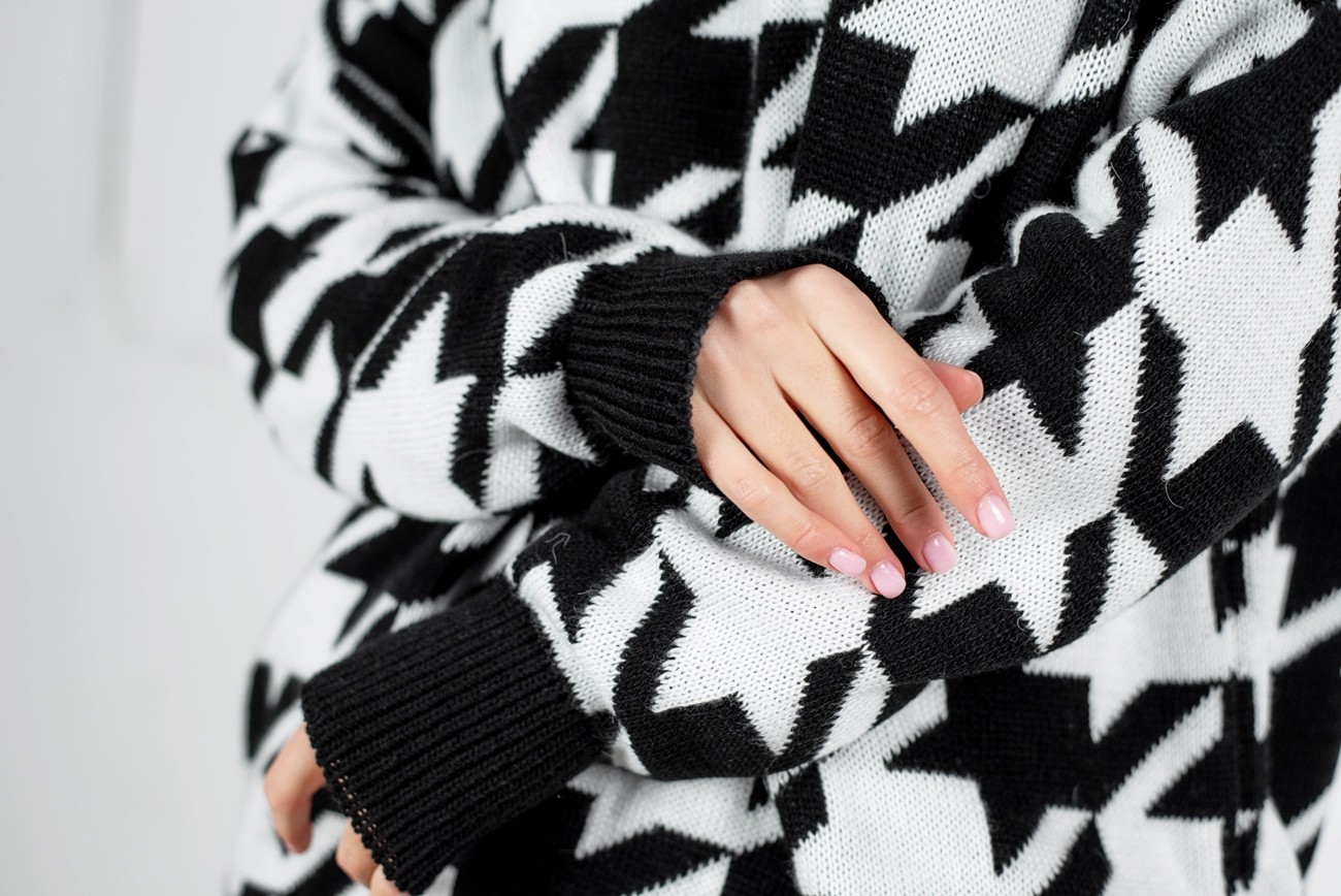 Будьте первым, кто оставит отзыв о "Свитер" Донна " - Гусиная лапка - шерсть - Oversize - Черный-белый"