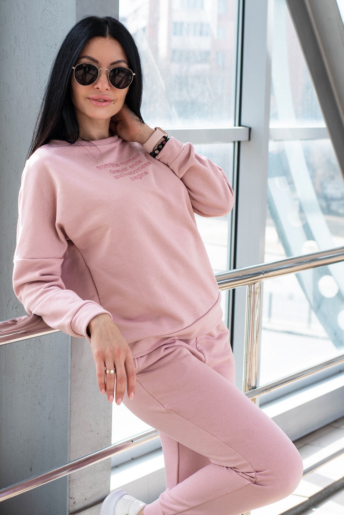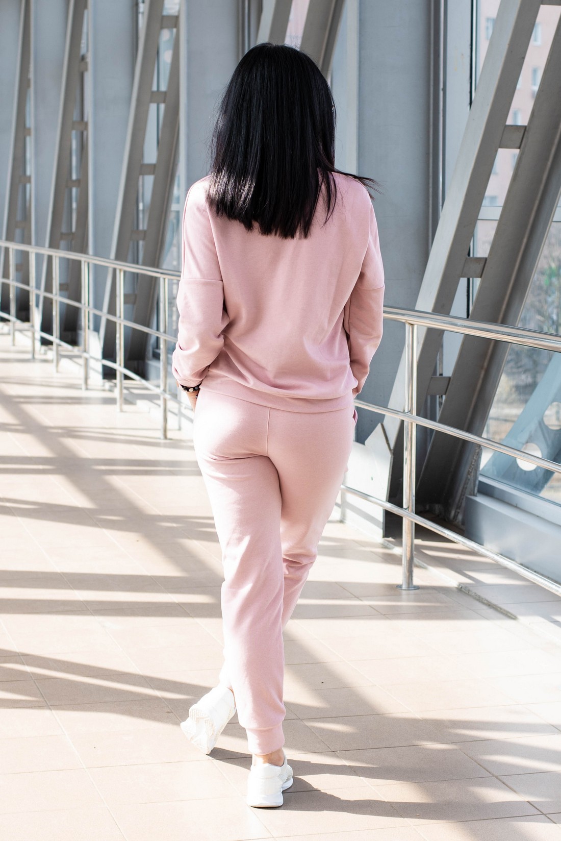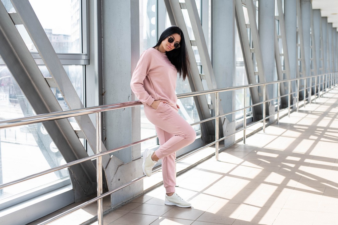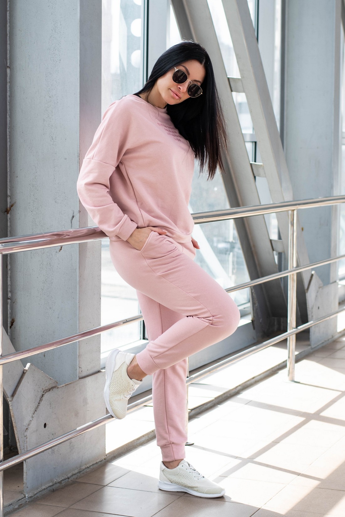 Жіночий костюм вільного крою - Тринітка - «Дженіфер» - Пудра