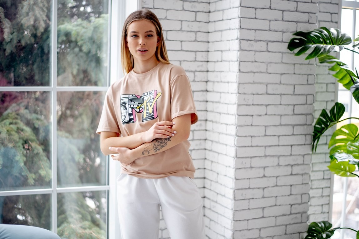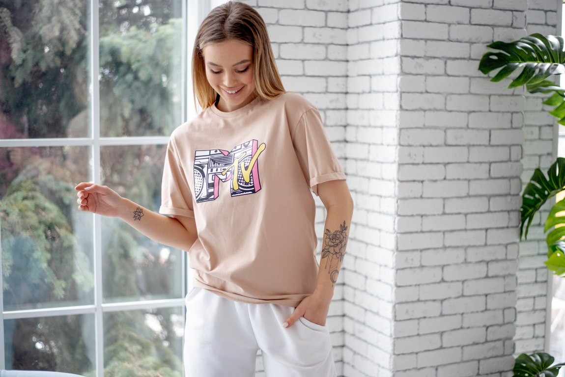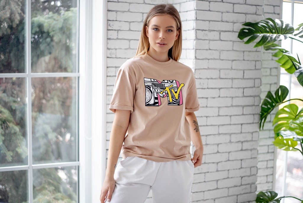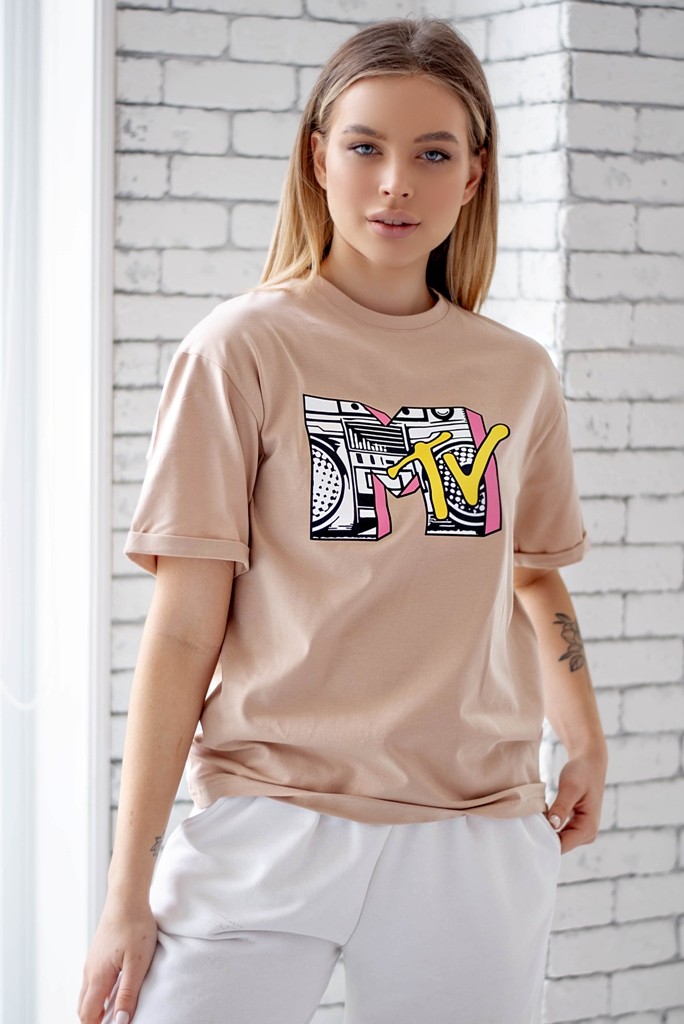 Жіноча футболка - оверсайз - бежева з принтом MTV