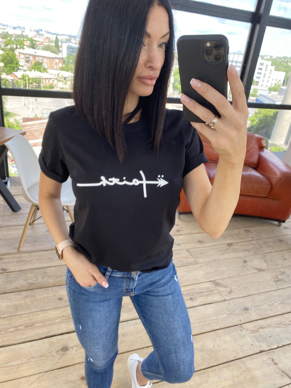 Жіноча футболка - вільний крій - Бавовна - "Файт" - Чорна