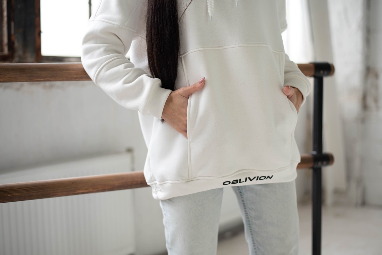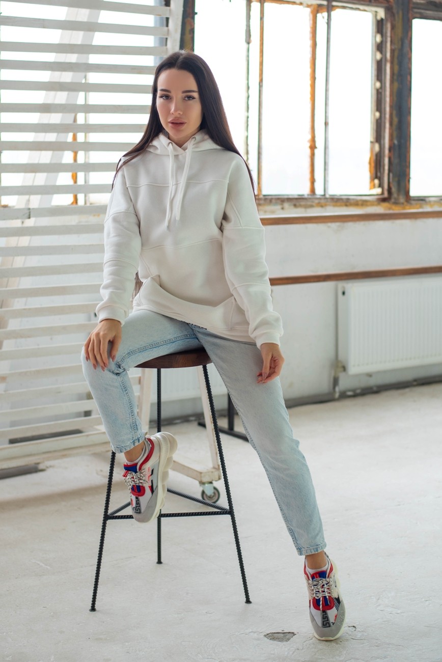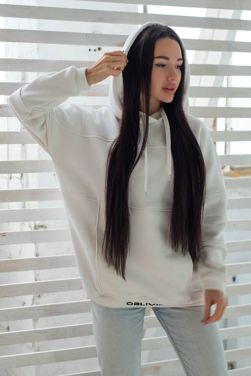 Жіночий худи на флісі з капюшоном Oversize - "Оллі" - молоко