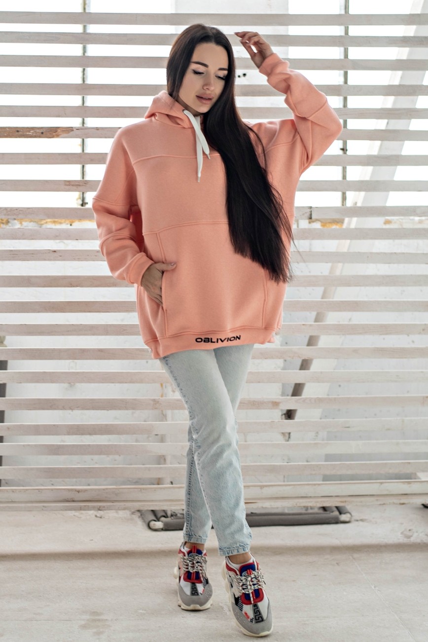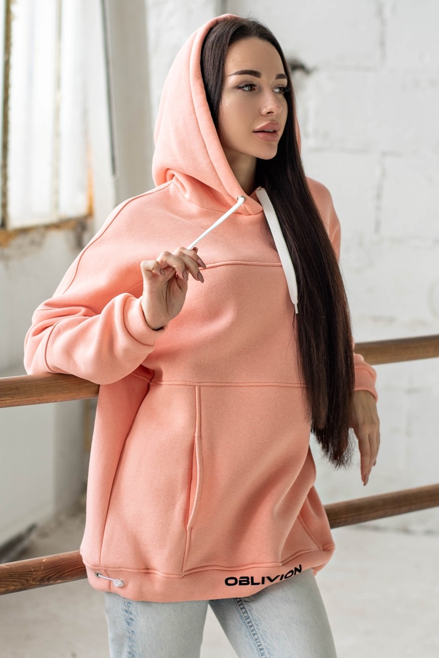 Жіночий худи на флісі з капюшоном Oversize - "Оллі" - персик