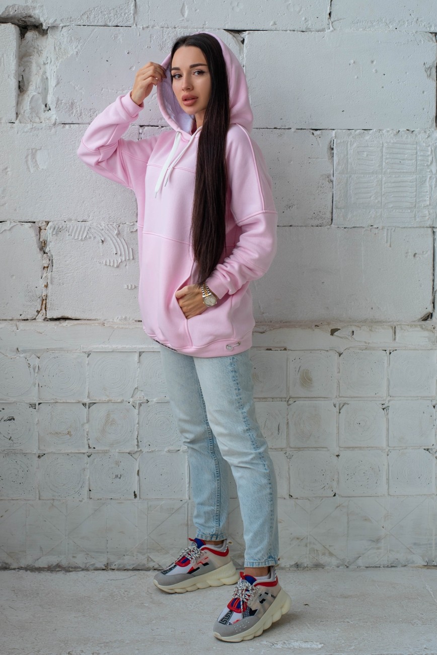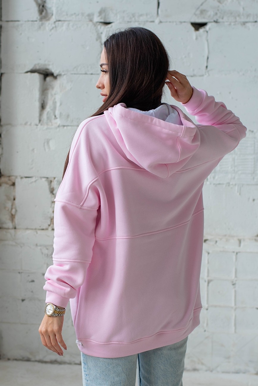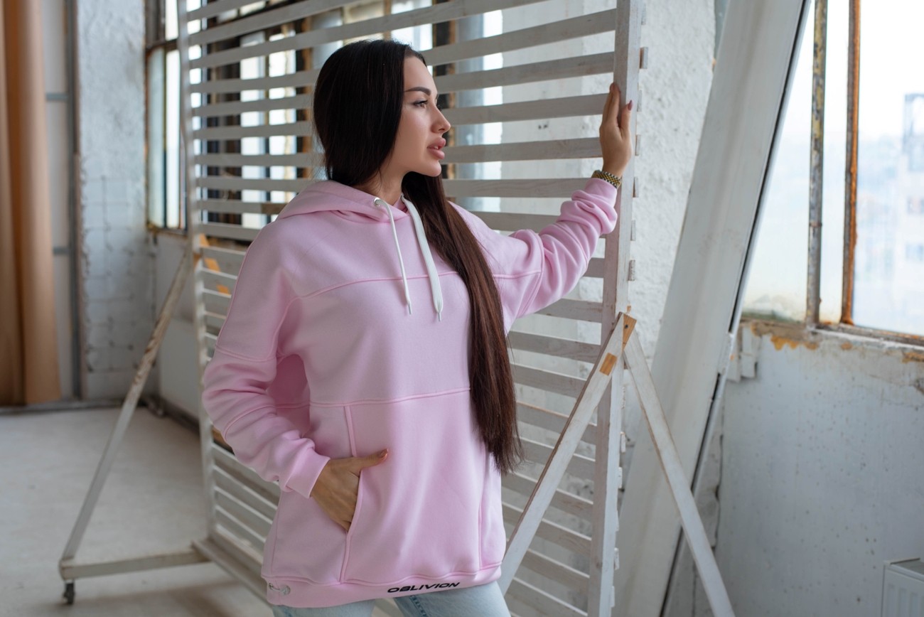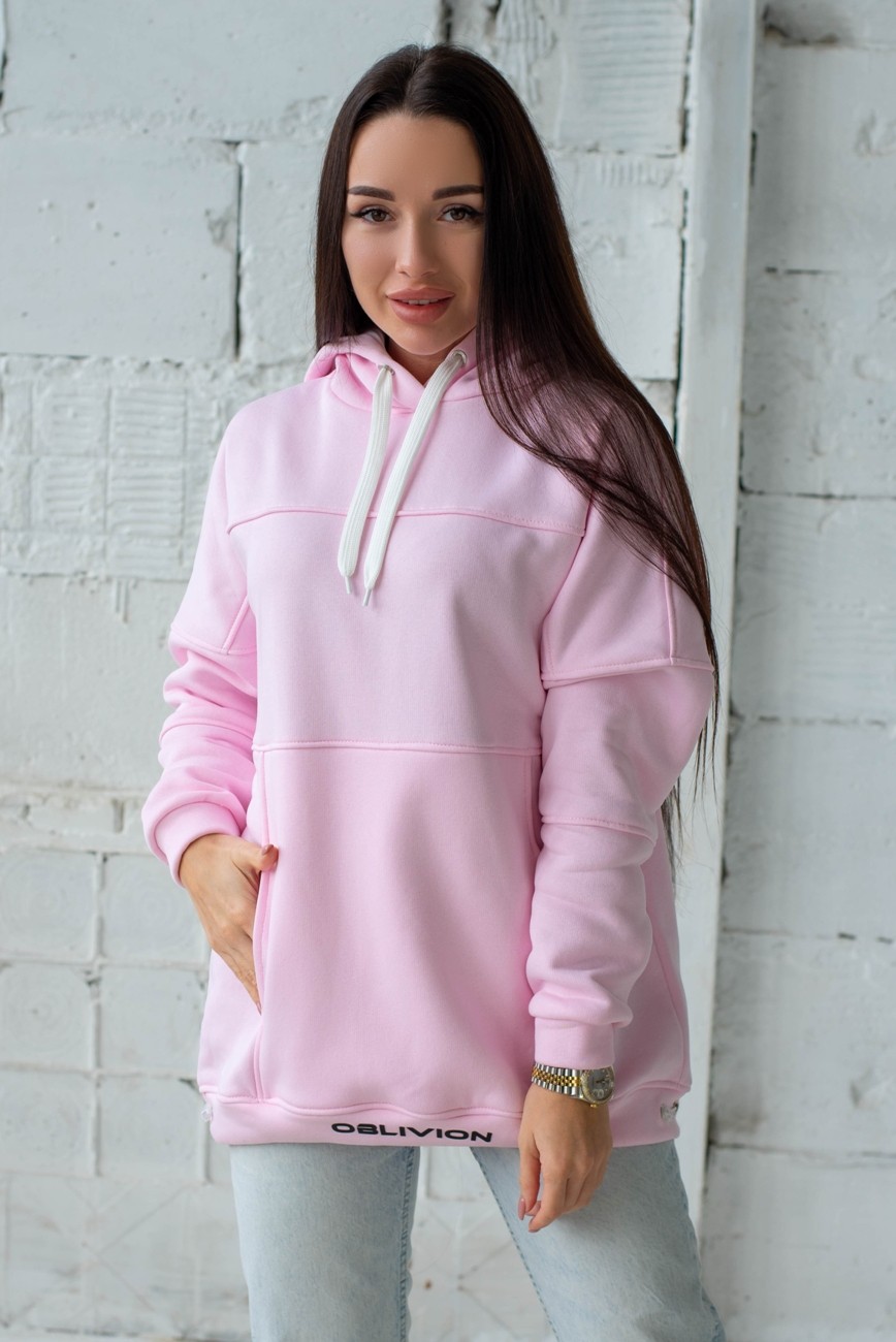 Жіночий худи на флісі з капюшоном Oversize - "Оллі" - рожевий