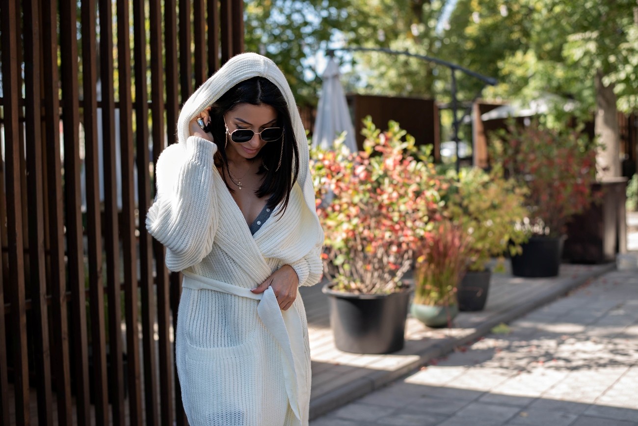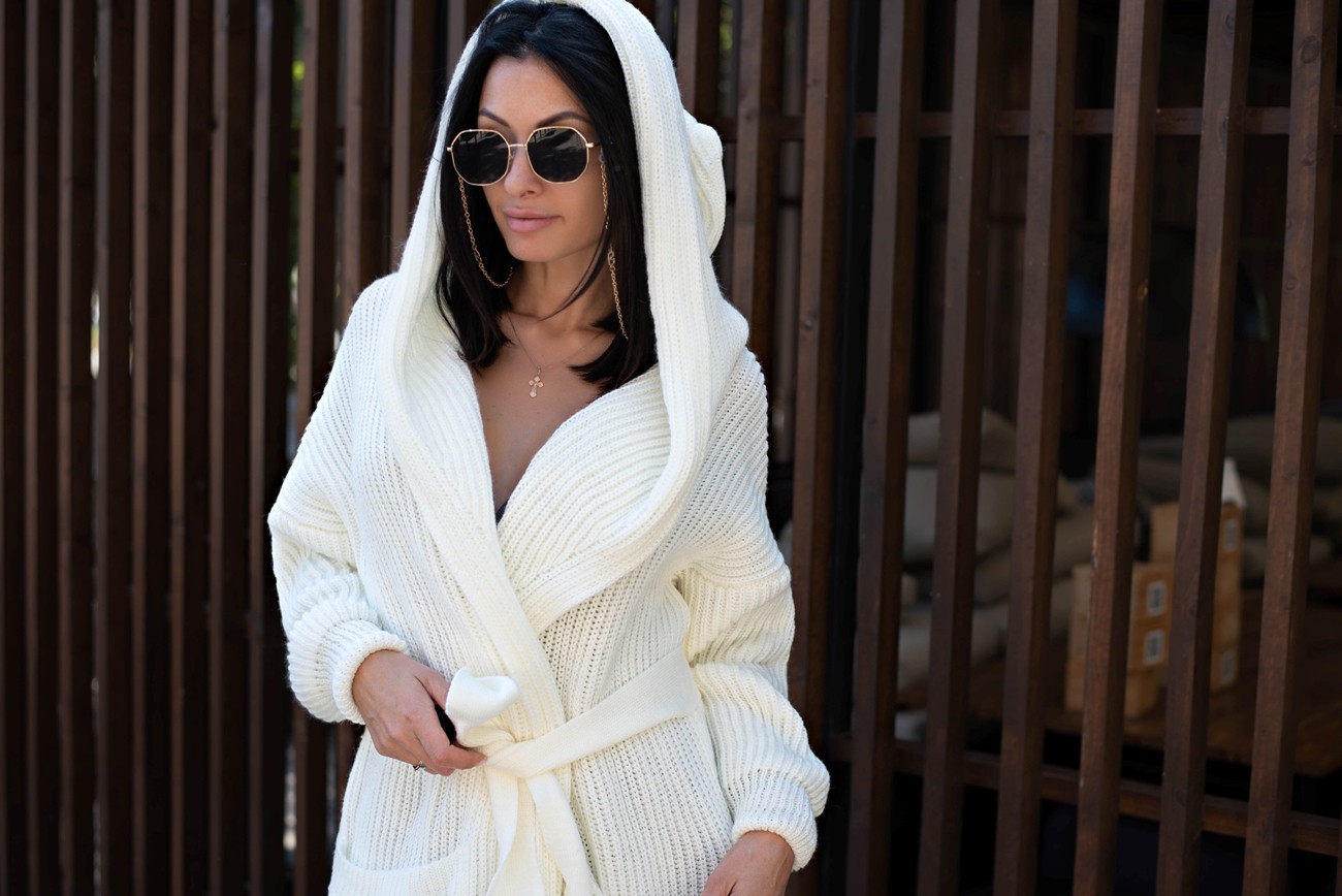 Жіночий кардиган з капюшоном - напівшерсть-бiлий
