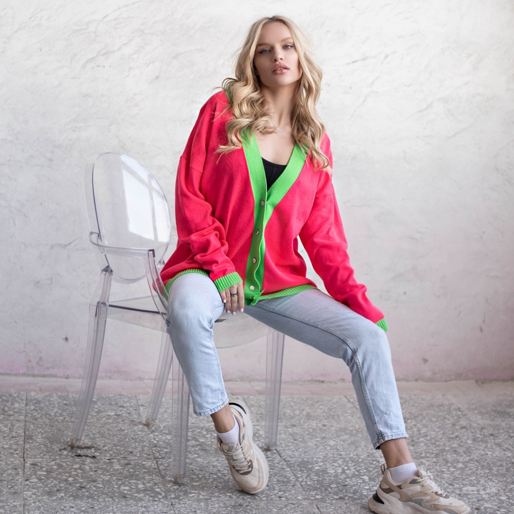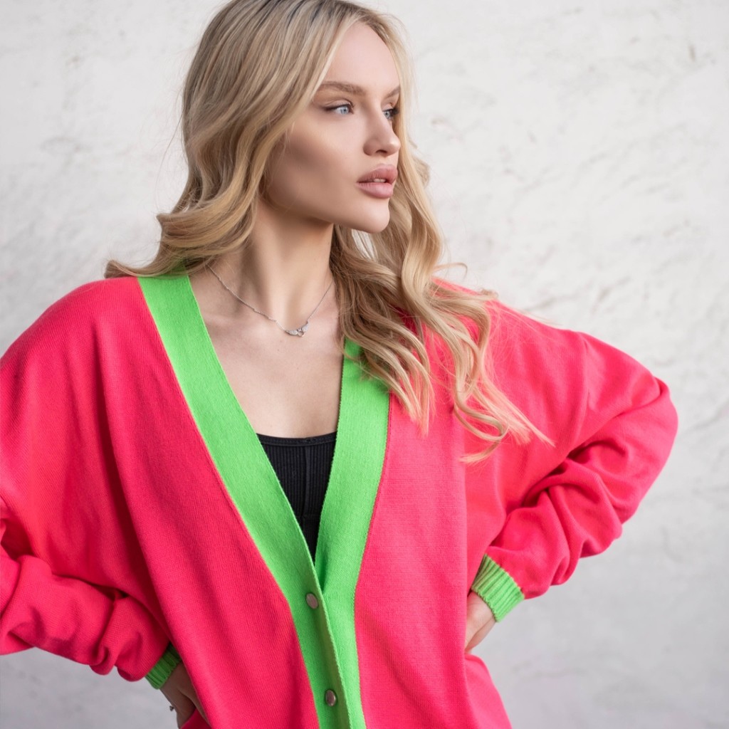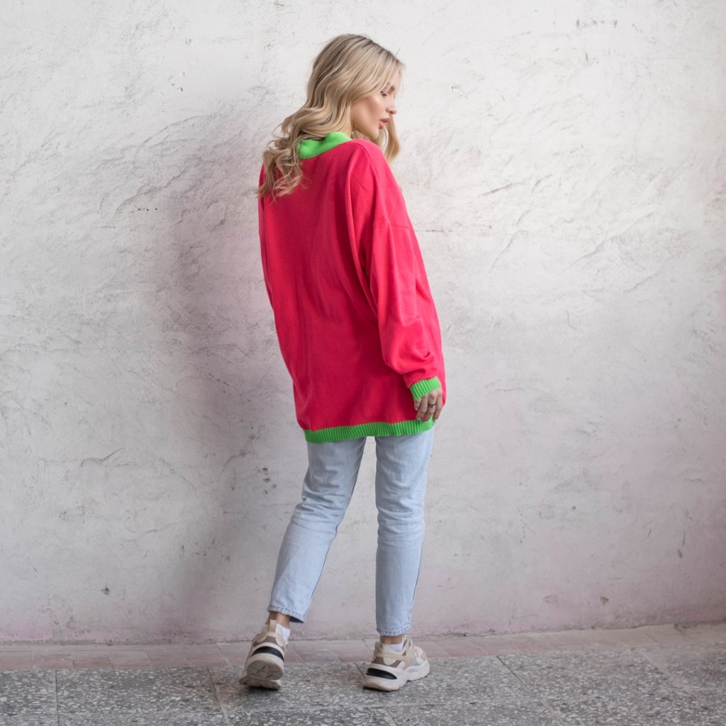 Кардиган з гудзиками - oversize - "Беатріс" - Малиново-зелений