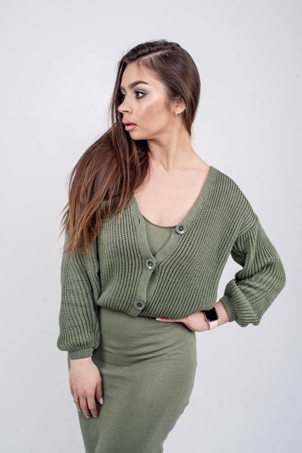 В'язана жіноча кофта - Бавовна -Шерсть - Акрил - "Келлі" - Хакі