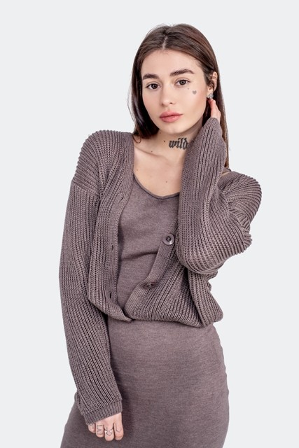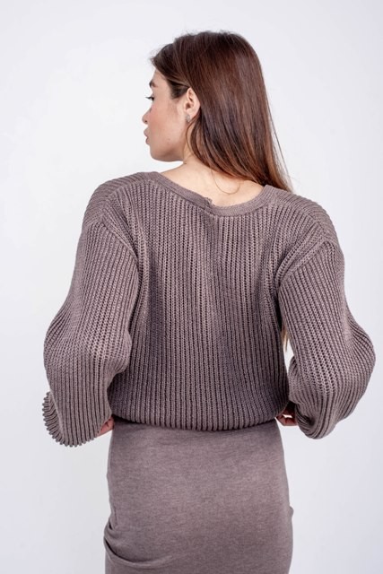 В'язана жіноча кофта - Бавовна - Шерсть - Акрил - "Келлі" - Шоколад