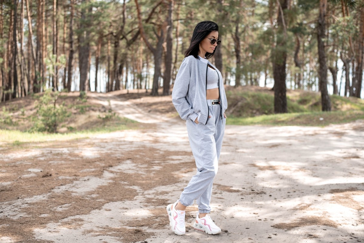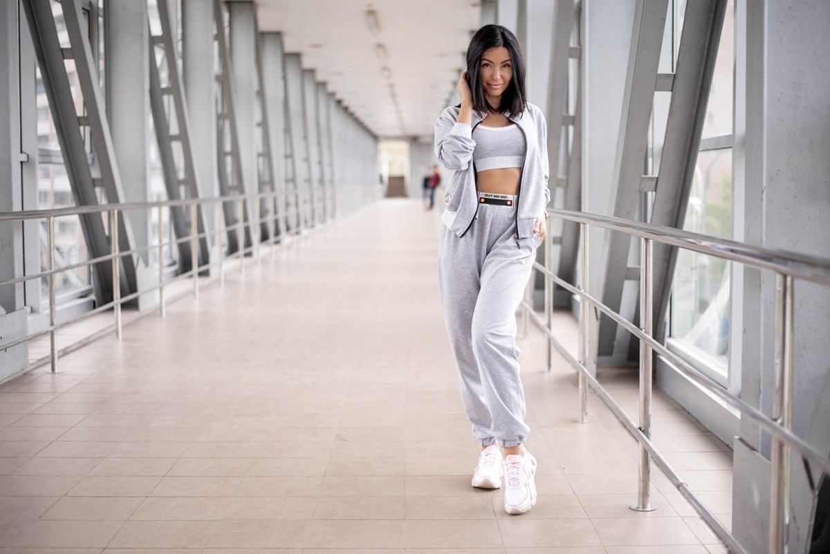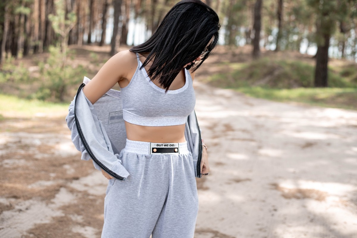 Жіночий спортивний костюм-трійка з коротким топом, брюками та бомбером - "Б'янка" - сірий крейда