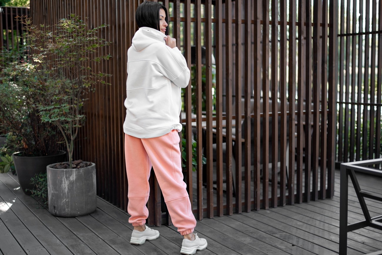Жіночий спортивний костюм на флісі - "Аврора" - молоко-персик