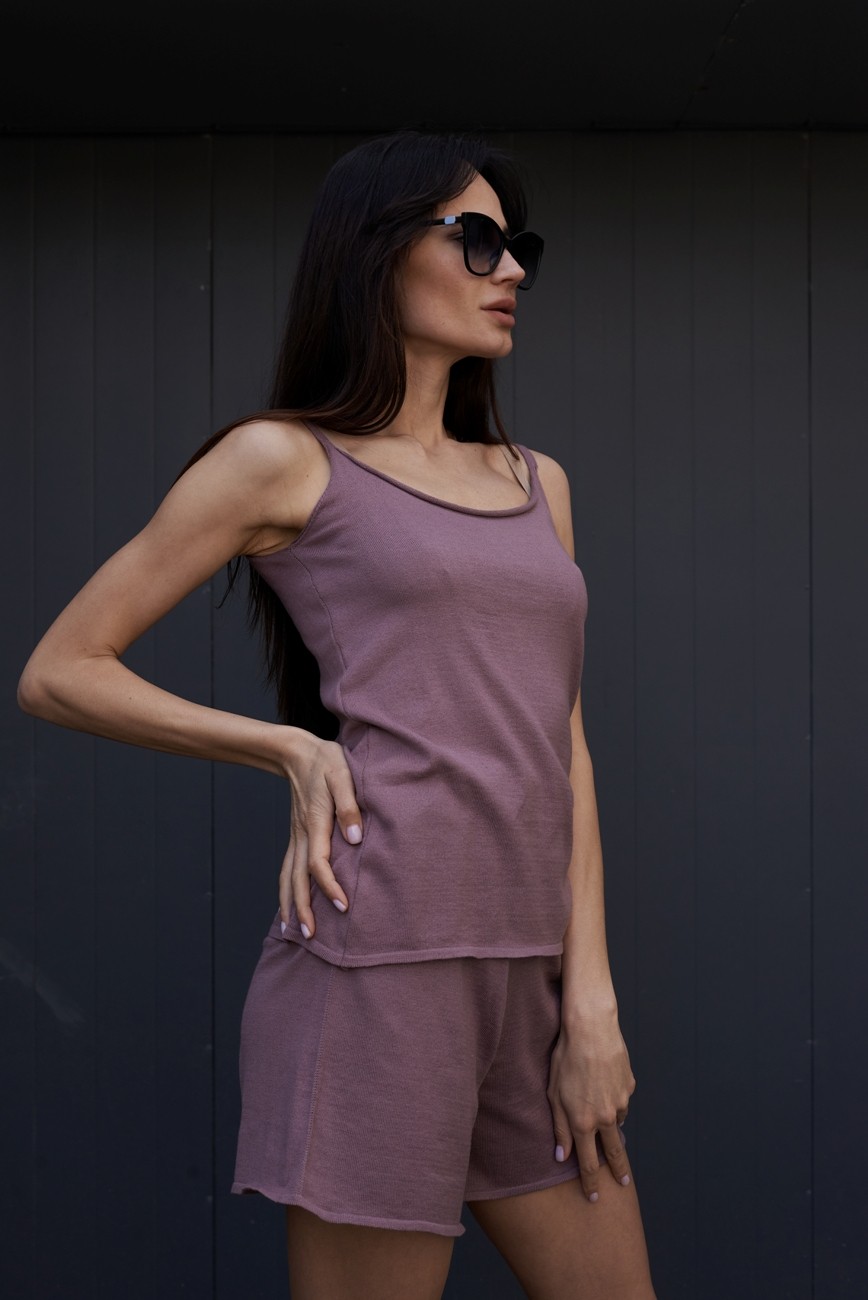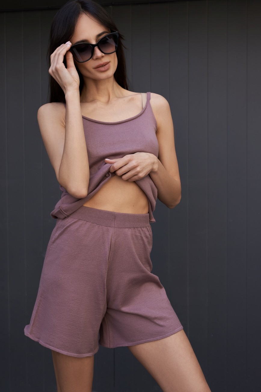 Костюм шорти та майка - Машинна в'язка - "Глорія" - Слива