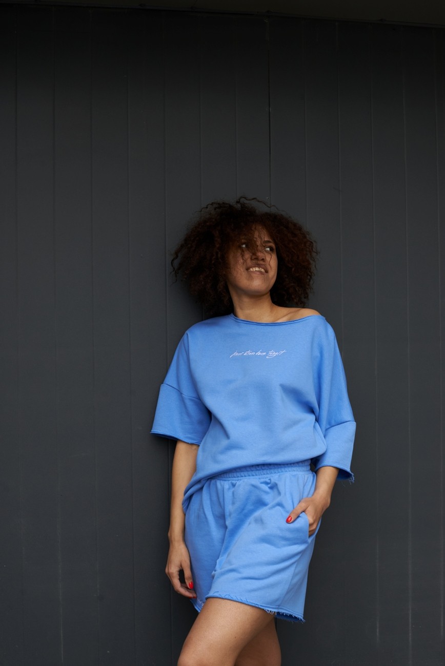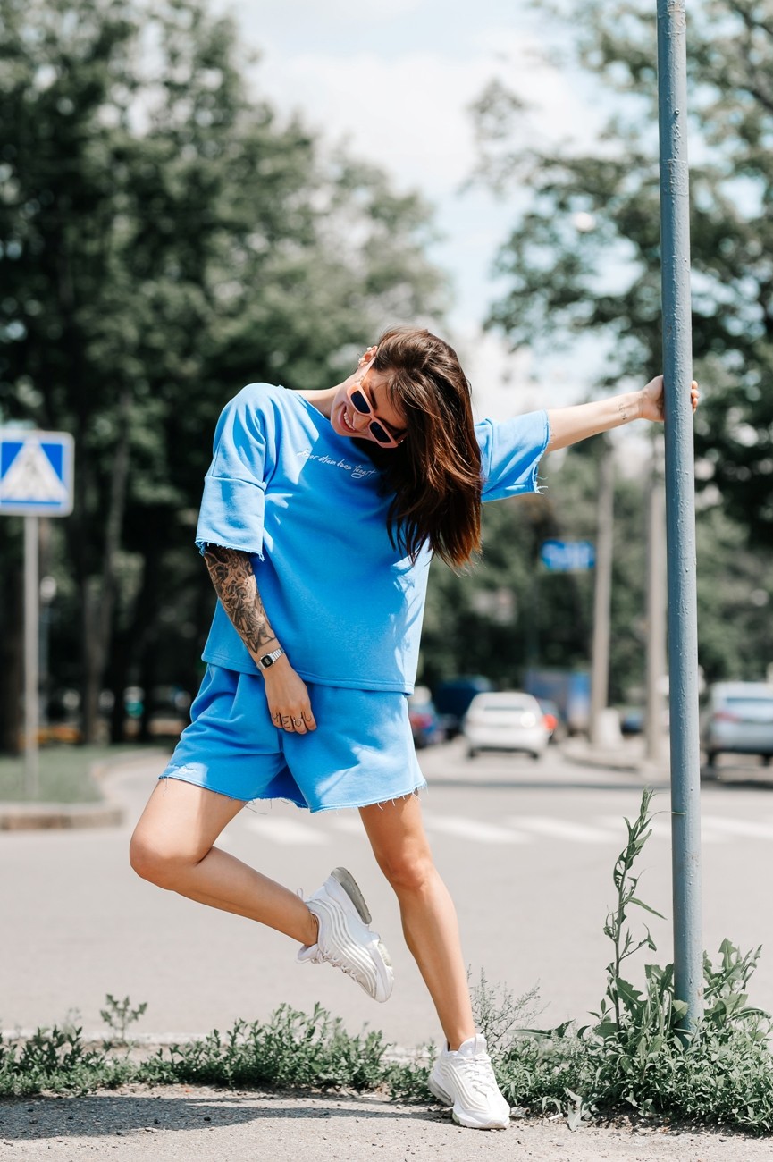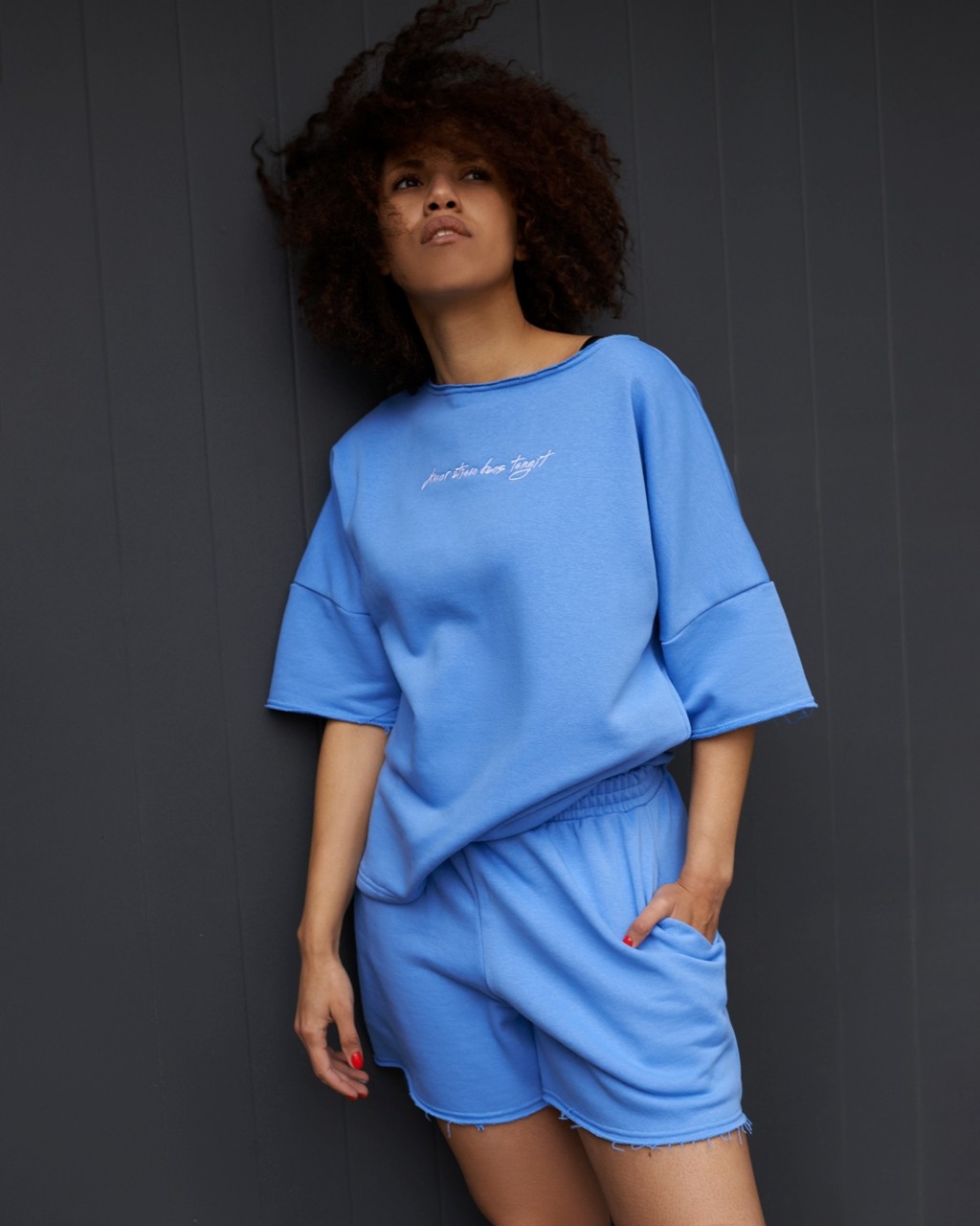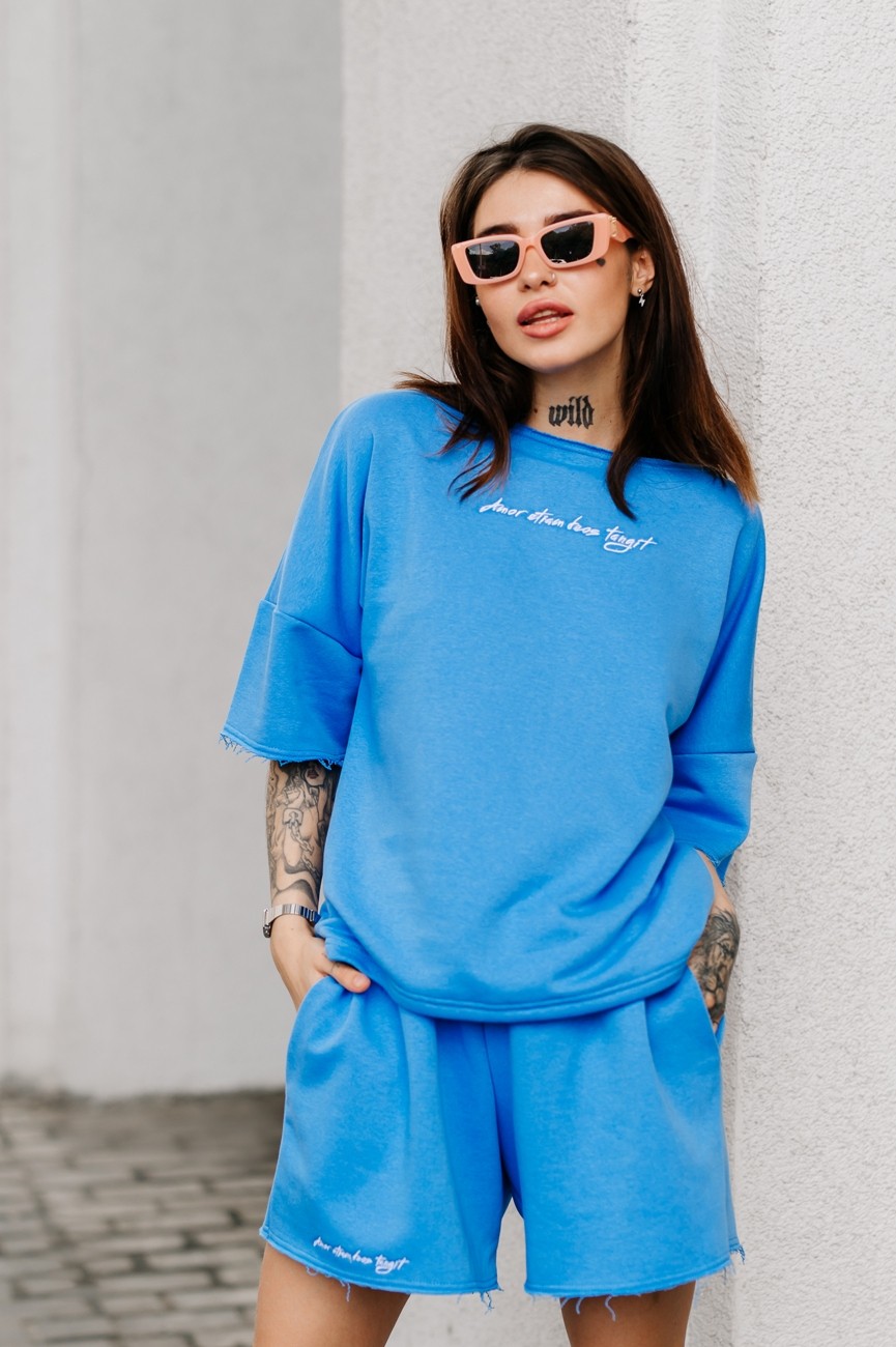 Костюм вільного крою - Футболка, шорти - Софія - Блакитний