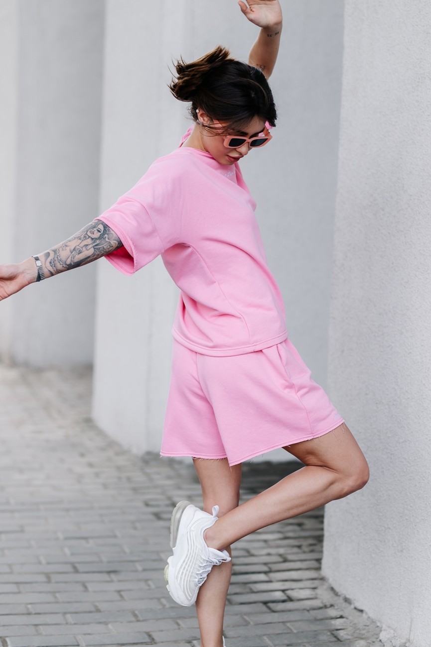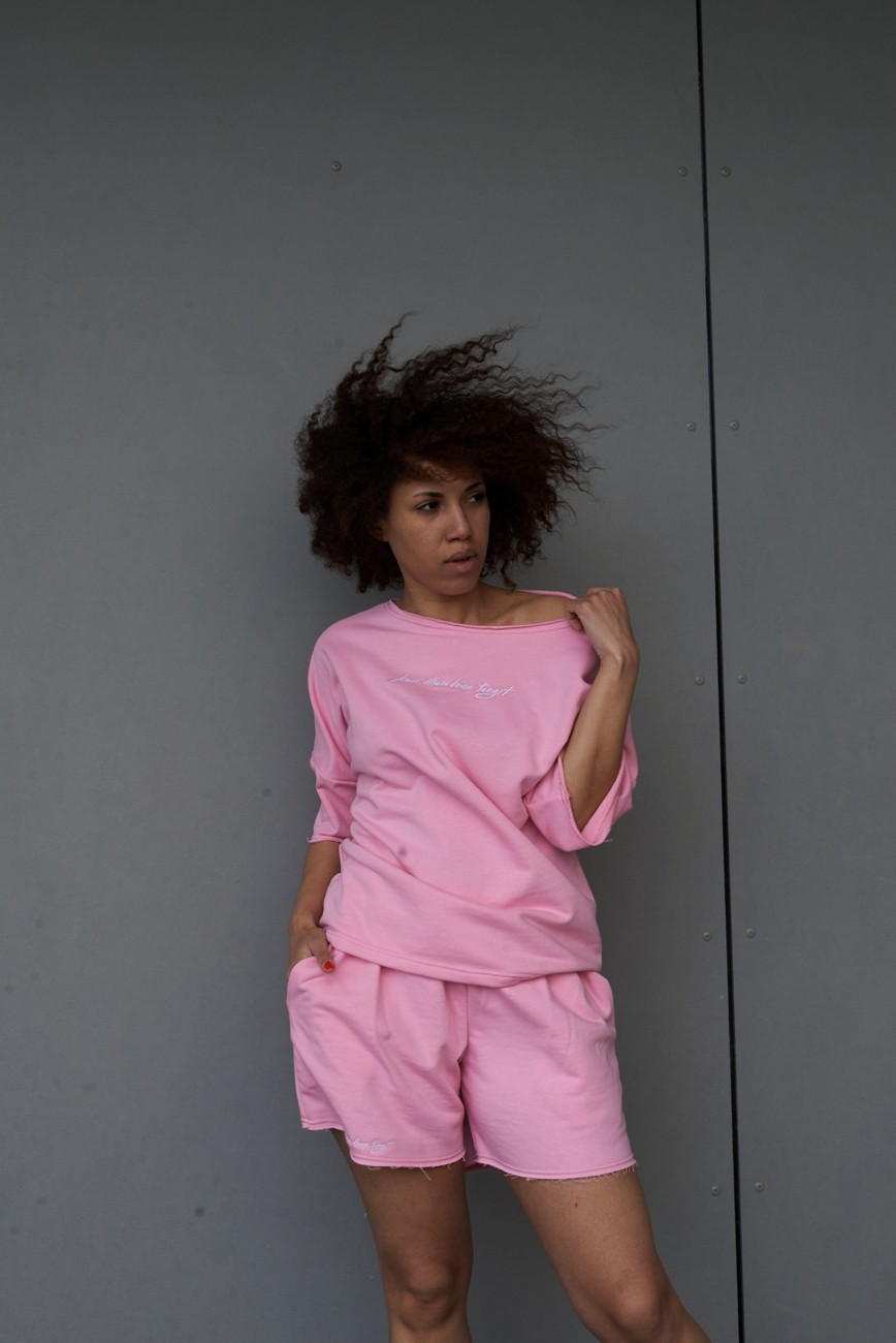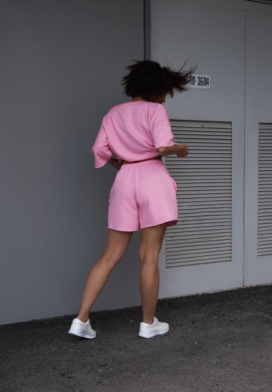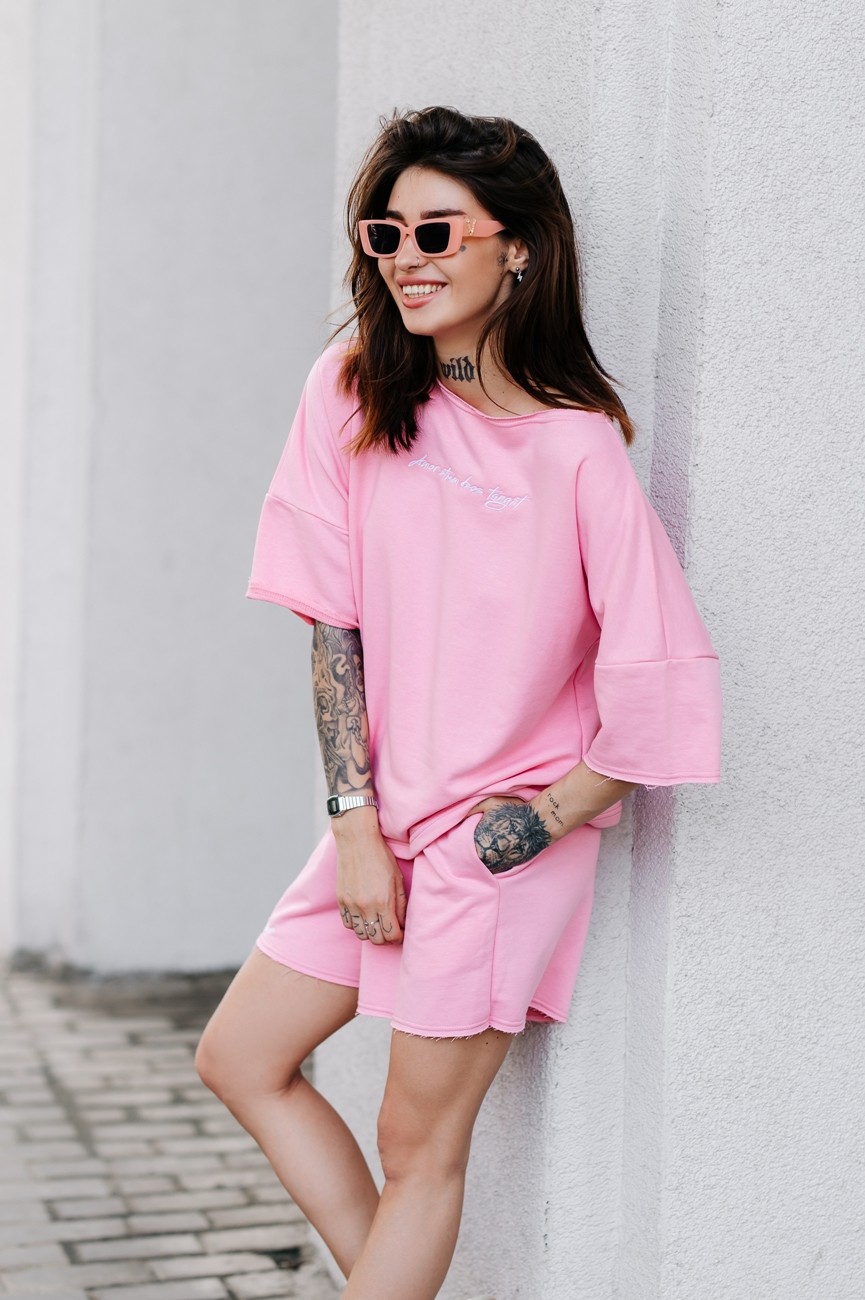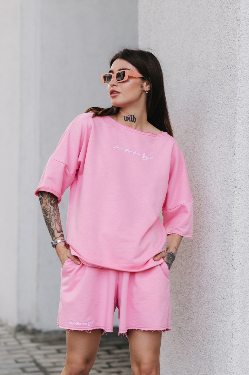 Костюм вільного крою - Футболка, шорти - Софія - Рожевий