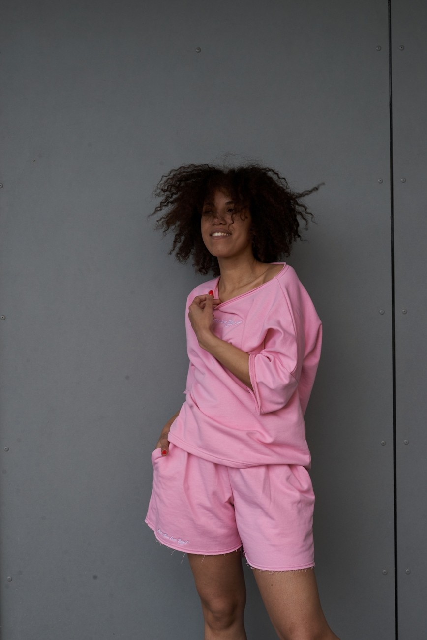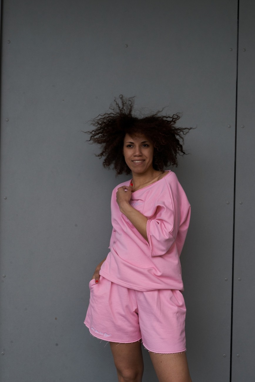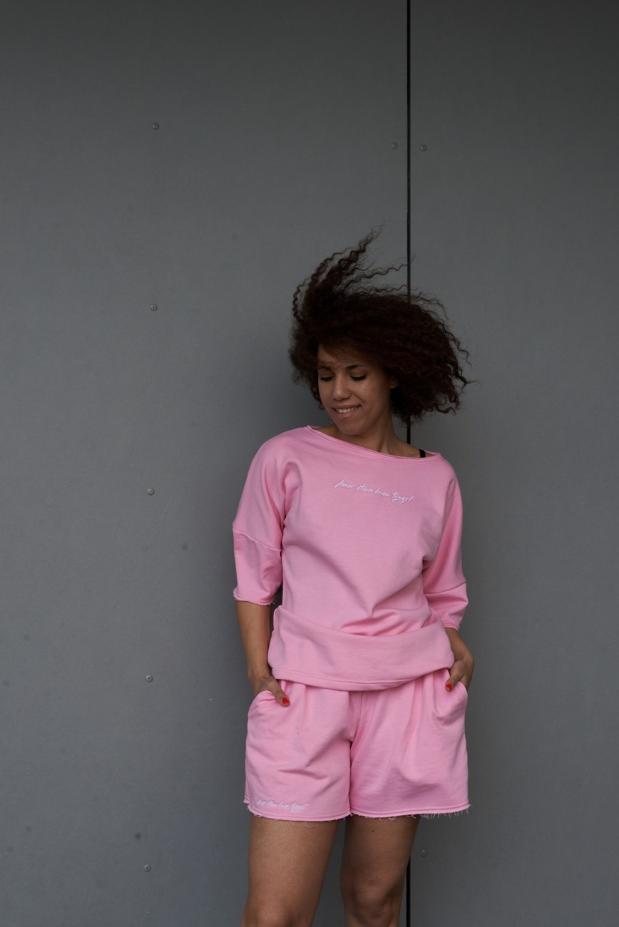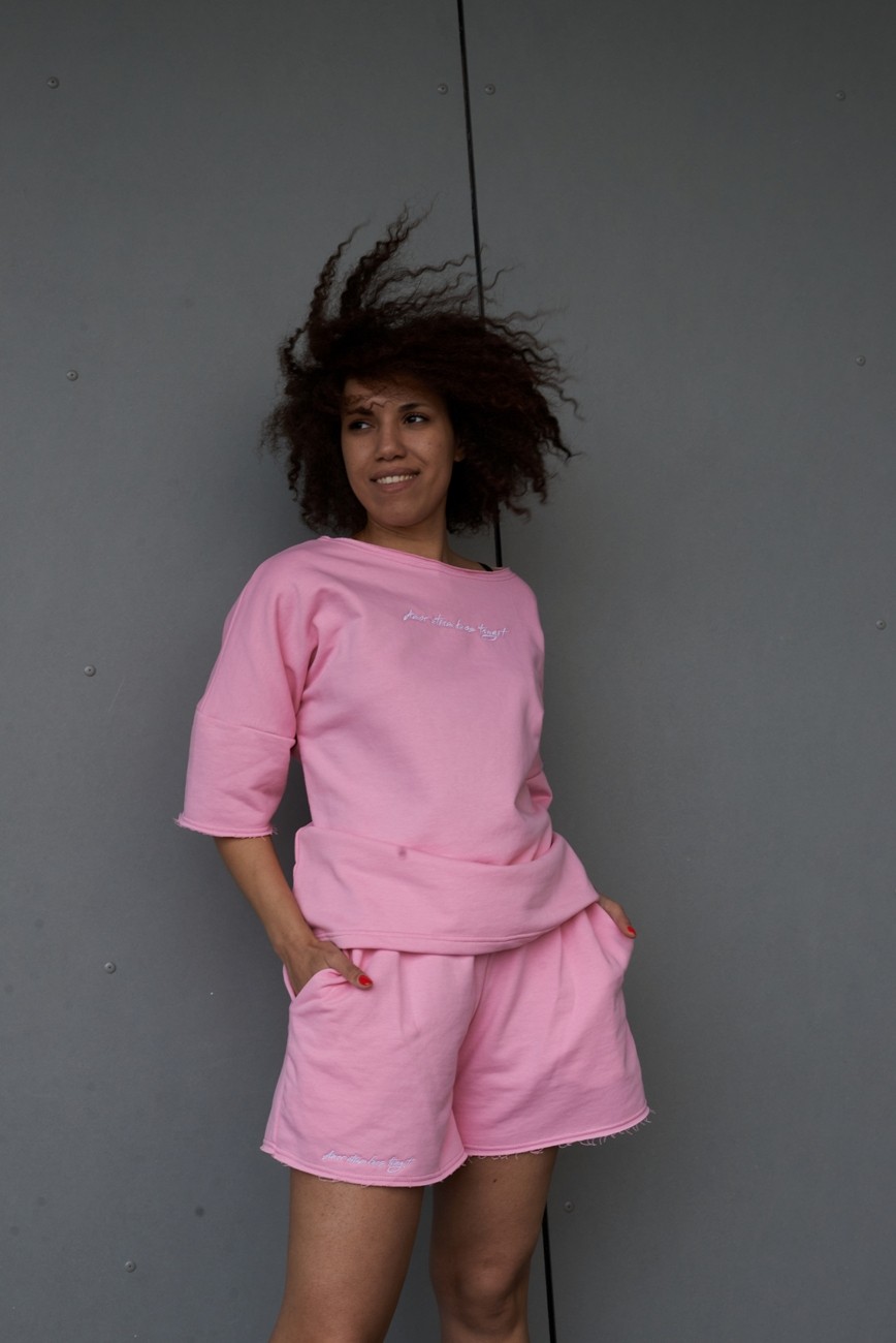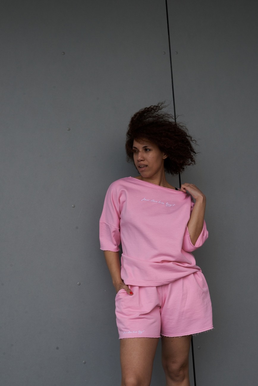 Костюм вільного крою - Футболка, шорти - Софія - Рожевий