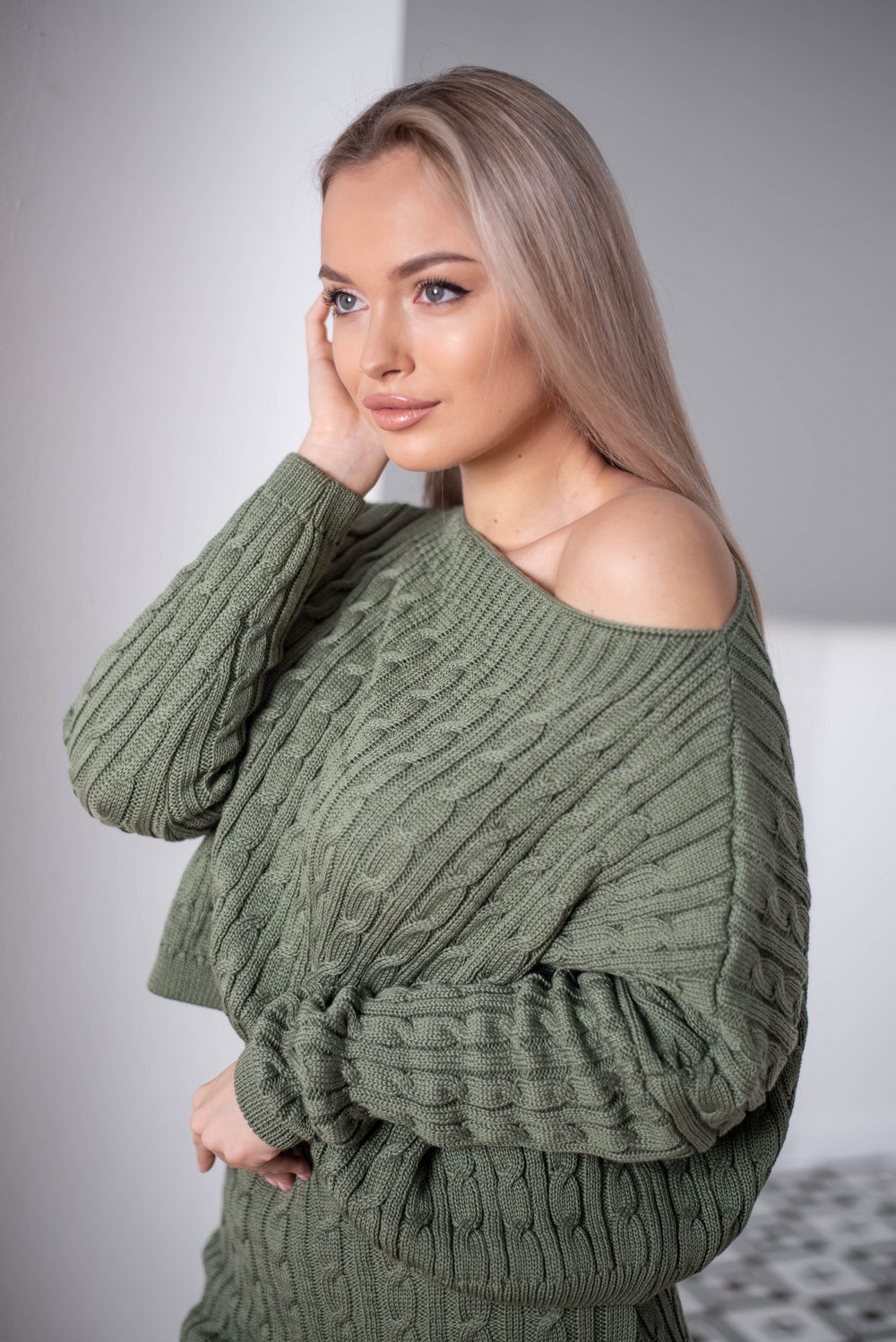 Будьте першим, хто залишить відгук про "В'язаний жіночий костюм - Спідниця міні і светр вільного крою - машинна в'язка - "Адель" - Хакі"