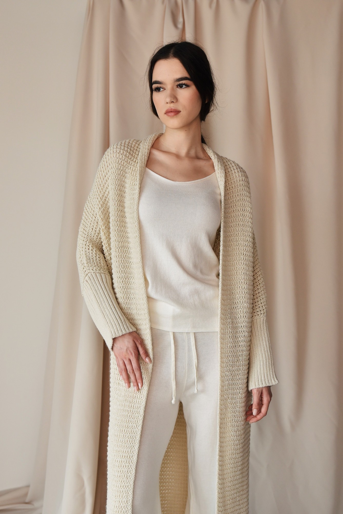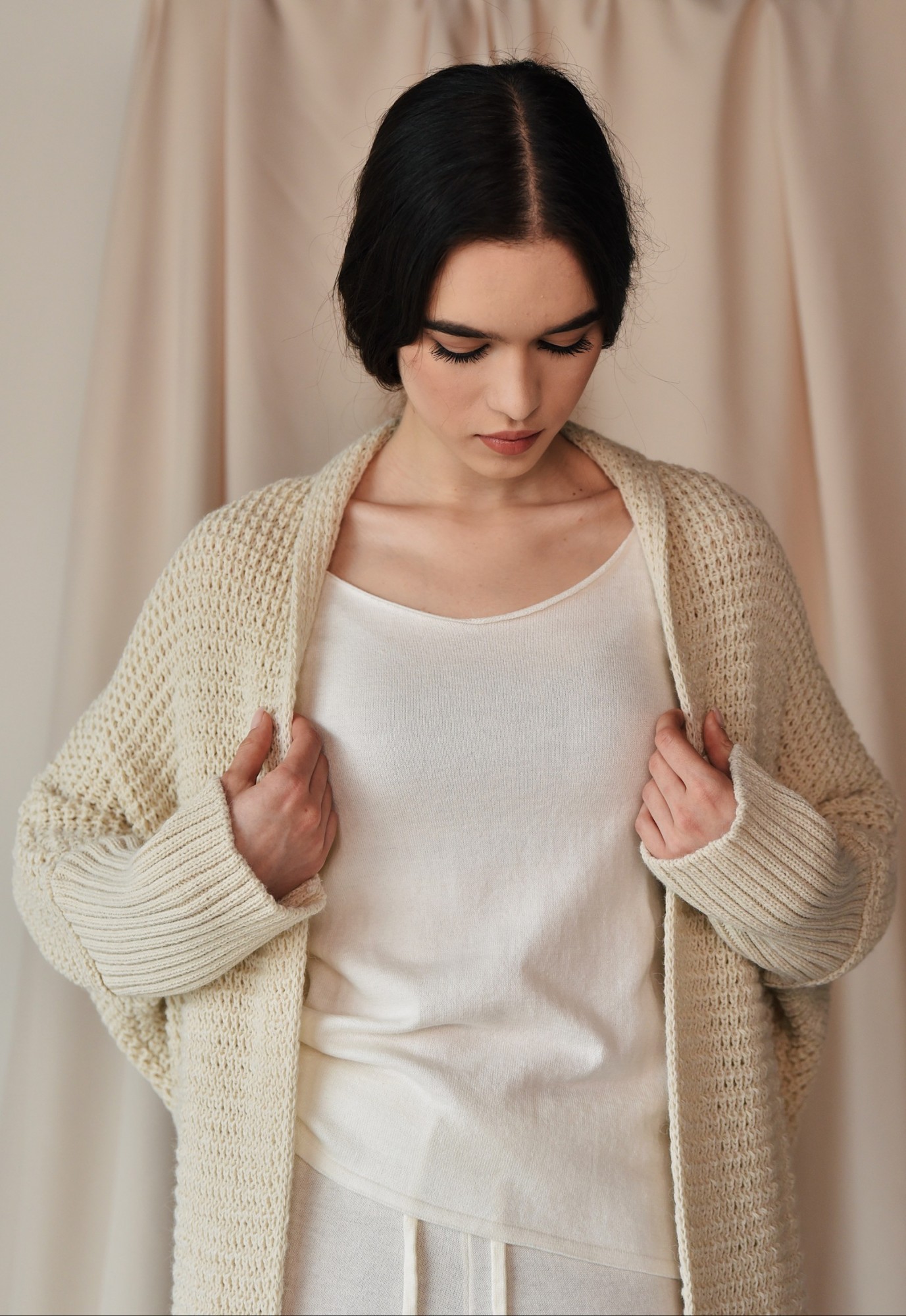 Невагомий в'язаний кардиган зігріє вас за будь-якої погоди.
