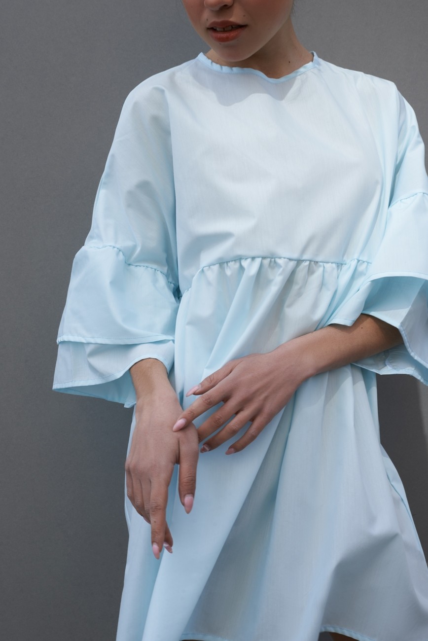 Мега невагома літня сукня з якісного котону, не жмакається,не линяє.На шиї фіксується білосніжним гудзиком у вигляді перлини.