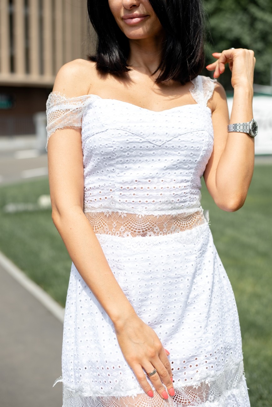 Сарафан з прошви на бретелях з м'яко-ніжного мережева.Спинку фіксує резинка.Не просвічує, має м'яку підкладку. S: Довжина передньої поли виробу (від верху ліфа) 112см. Довжина по спинці 103см. ПОГ 39см. (Максимальне розтягнення 48 см) М: Довжина передньої поли виробу (від верху ліфа) 116см. Довжина по спинці 106см. ПОГ 41см. (Максимальне розтягнення 50 см)