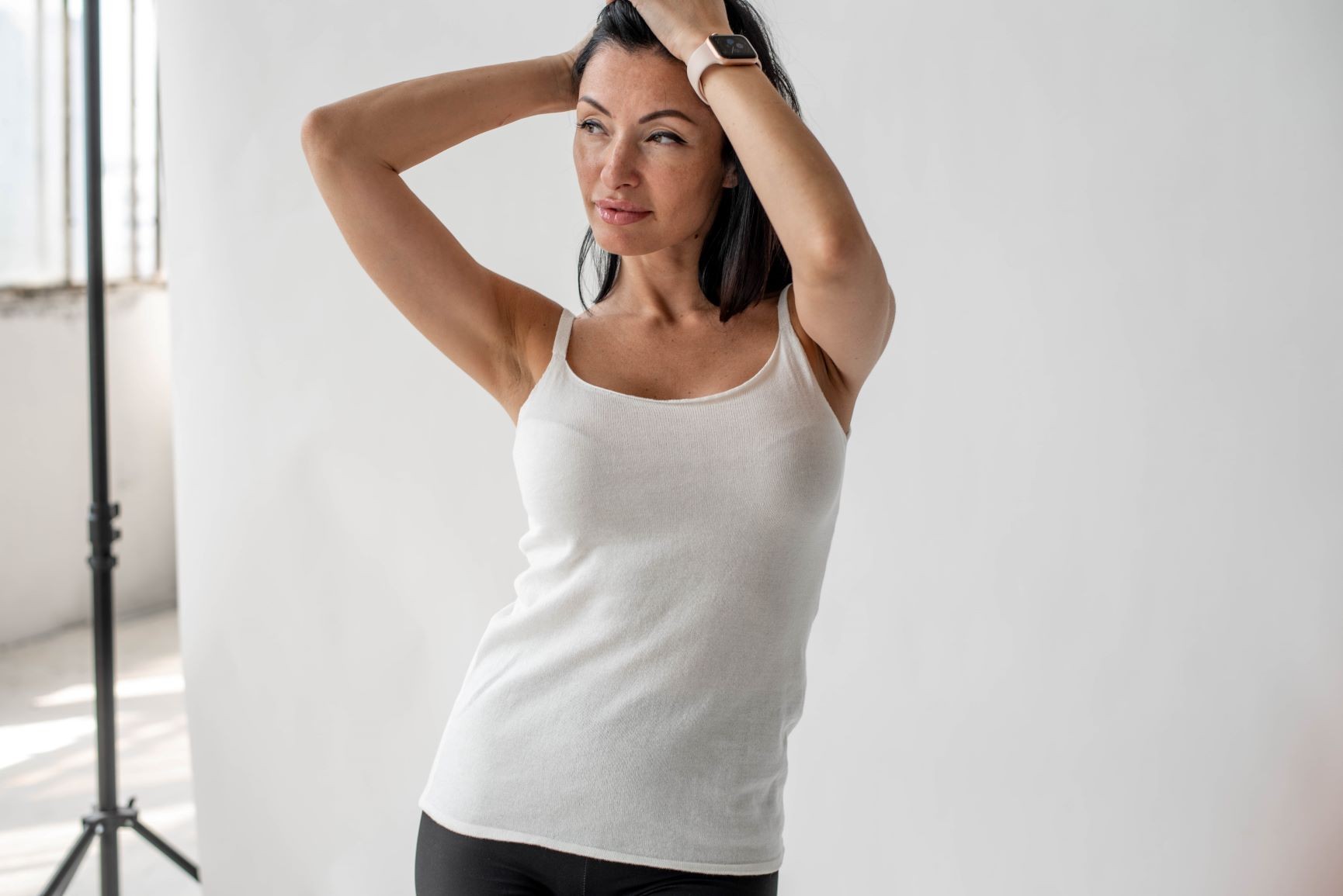 Улюблені в’язані майочки.Вони бездоганні и дуже приємні до тіла.Будуть елегантно виглядати, як самостійно, так і і в поєднанні з верхнім одягом.