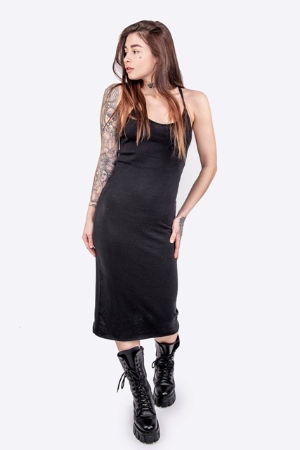 Сукня виконана з ніжної дрібної в’язки.Бретелі ззаду мають фіксатори