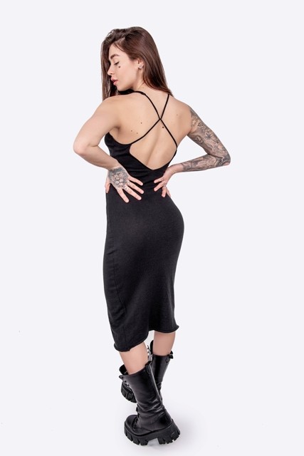 Жіноча сукня з відкритою спиною - машинна в'язка - "Ірис" - Чорна