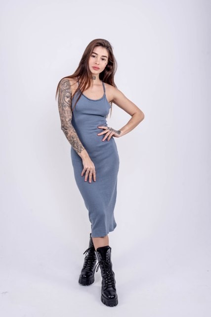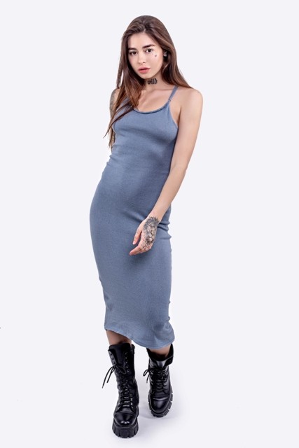 Сукня виконана з ніжної дрібної в’язки.Бретелі ззаду мають фіксатори