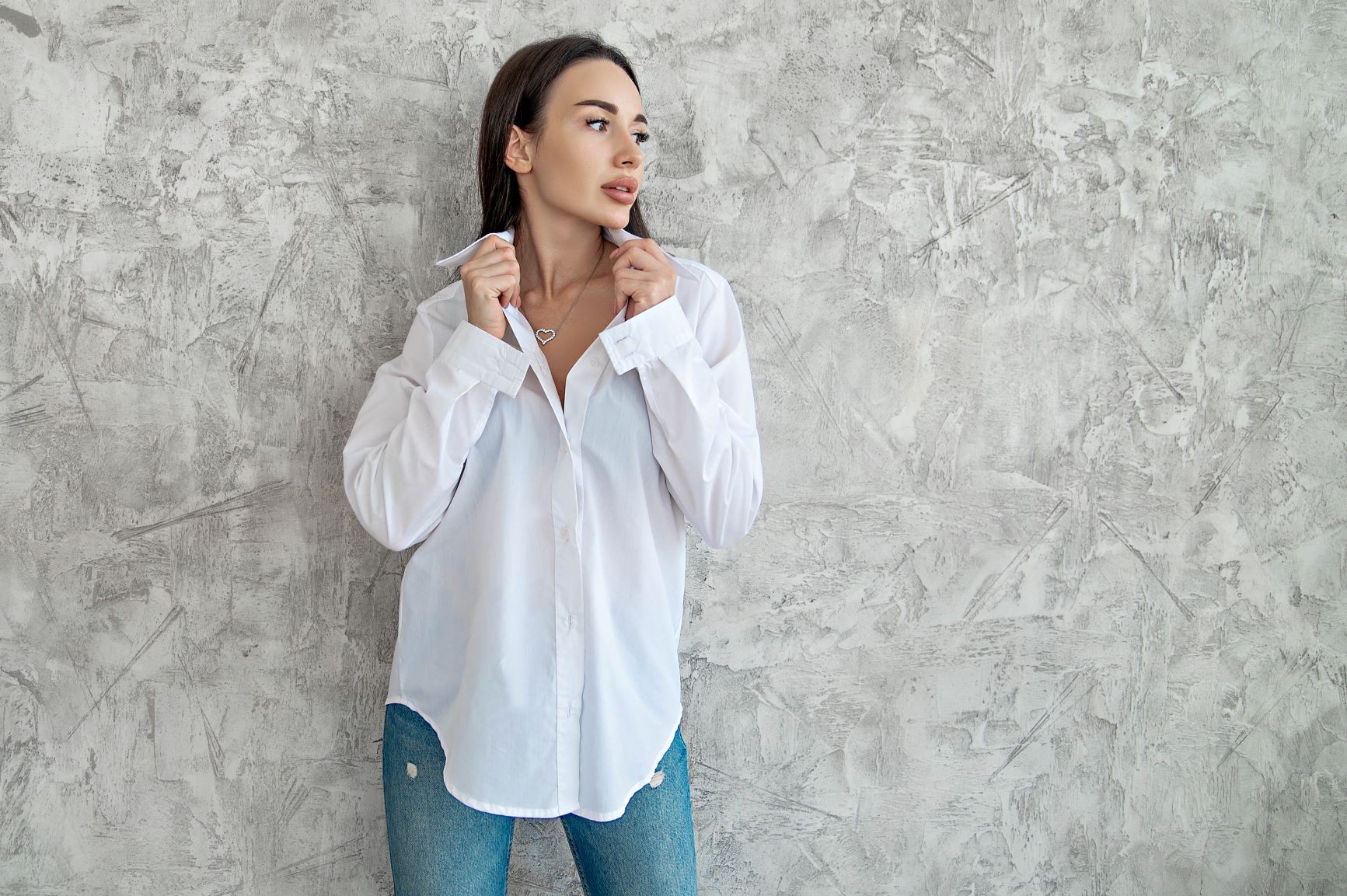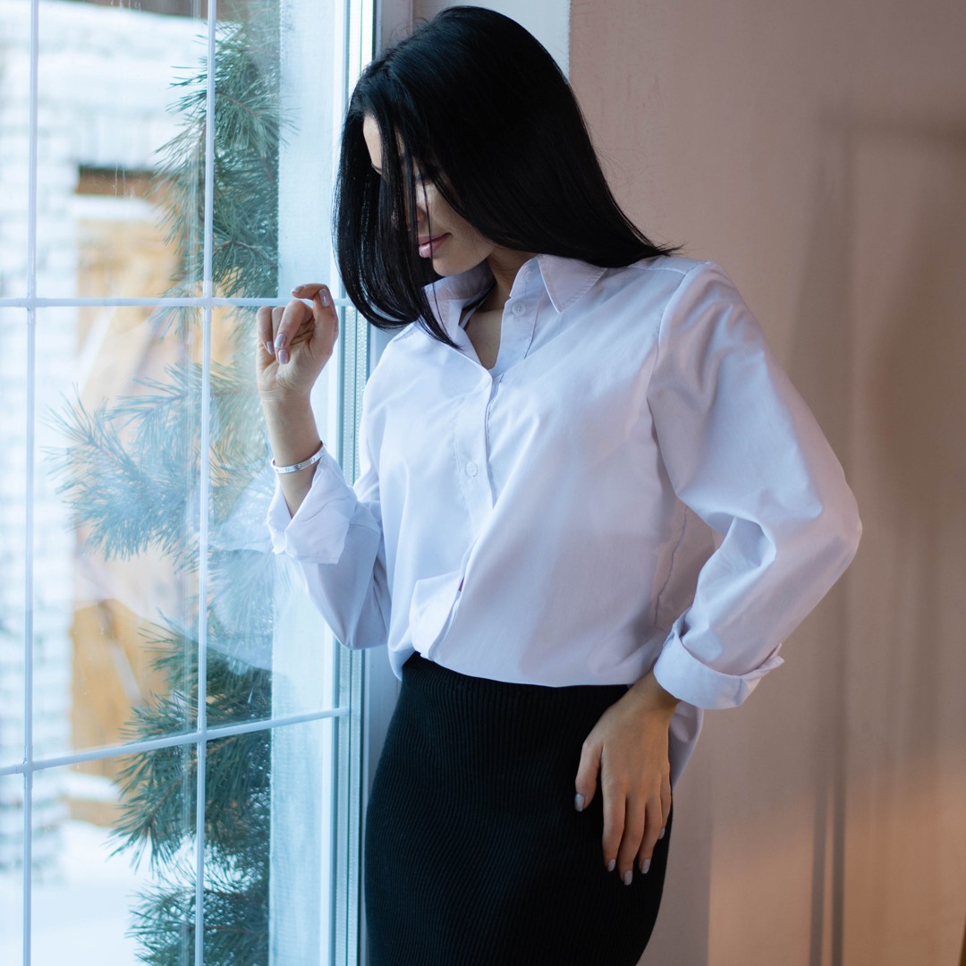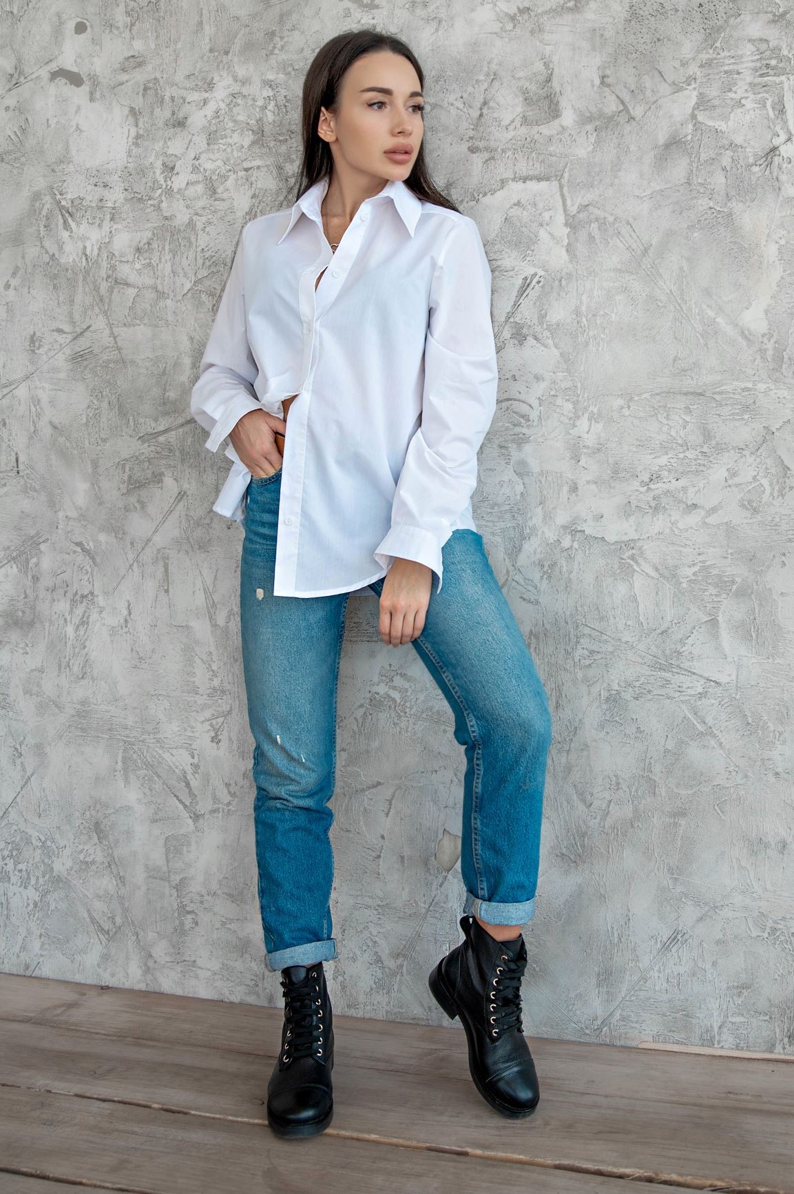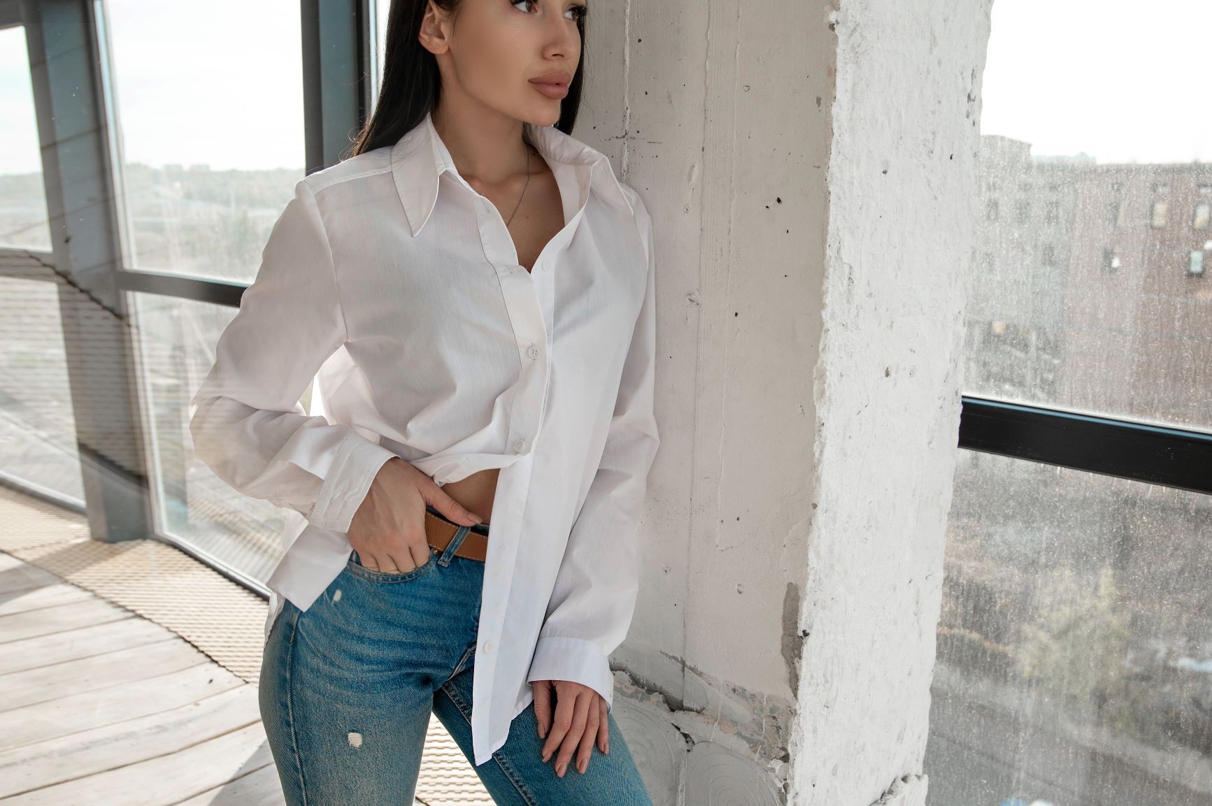Жіноча сорочка - Чоловічий крій - Бавовна - "Олівія" - Біла