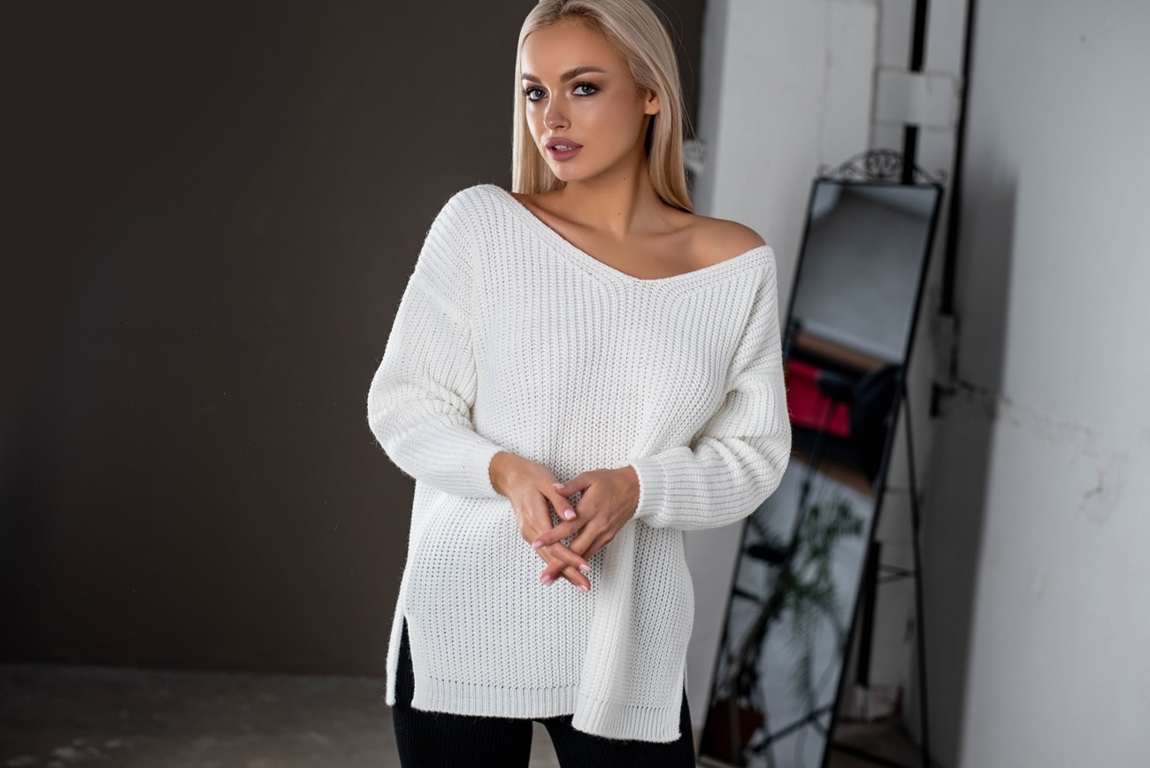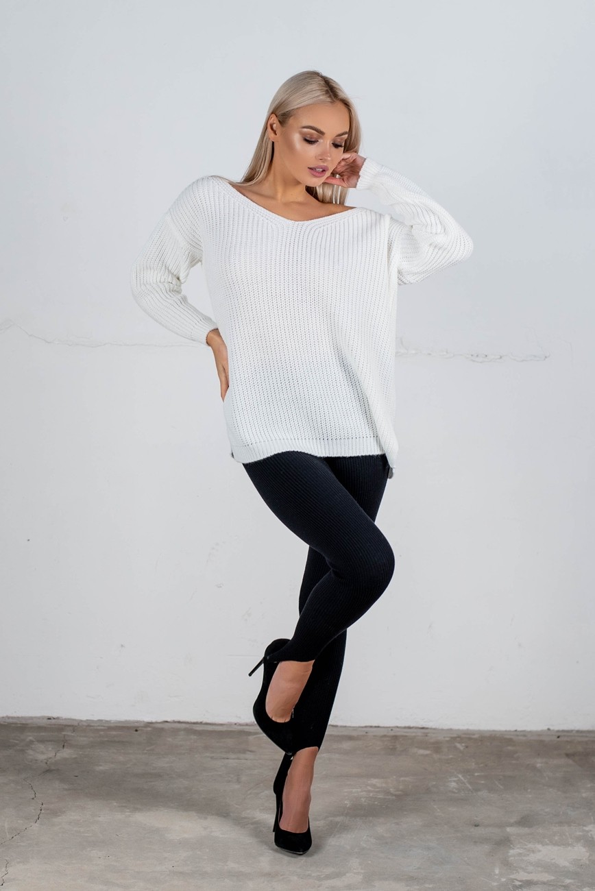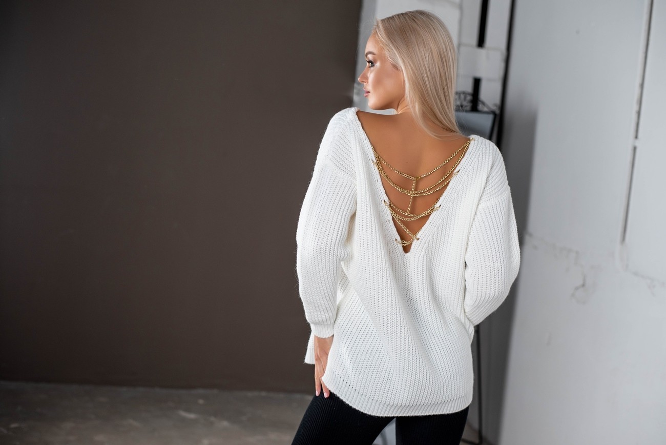 Светр з відкритою спиною oversize - машинне в'язання - "Кайлі" - Білий