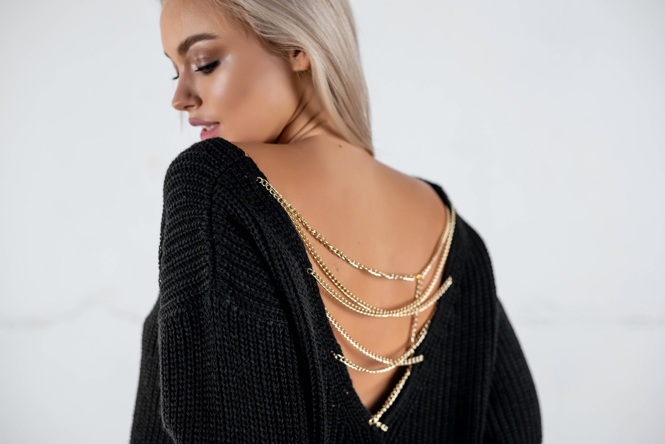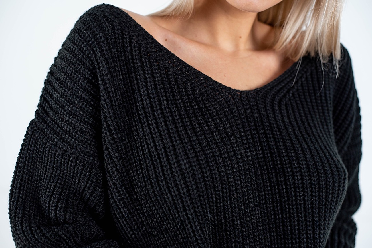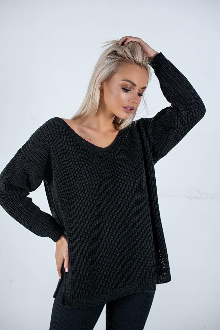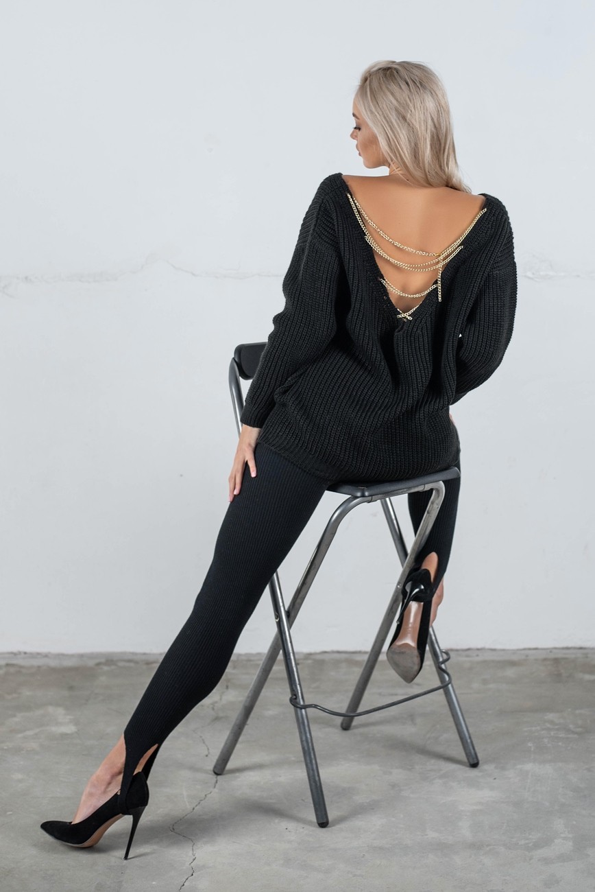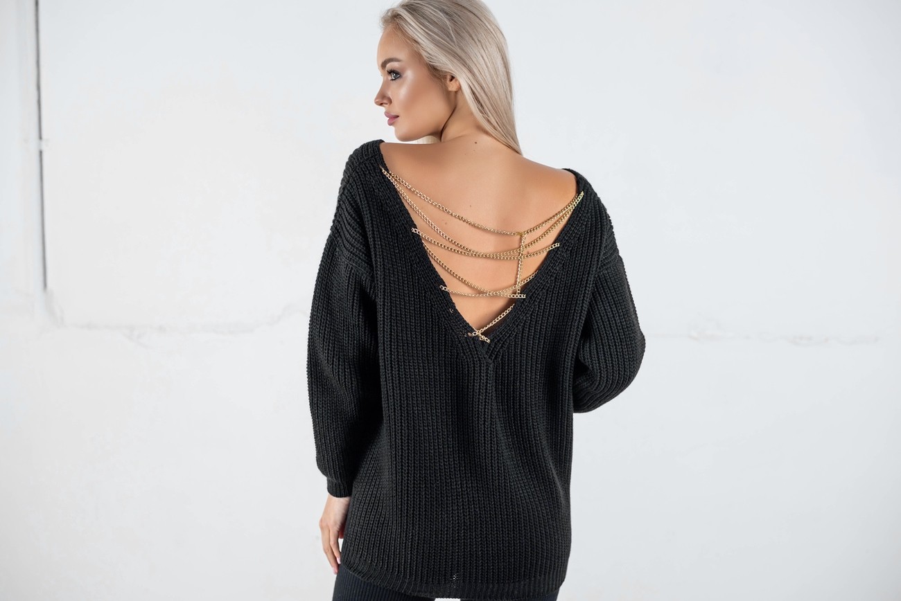 Светр з відкритою спиною oversize - машинне в'язання - "Кайлі" - Чорний