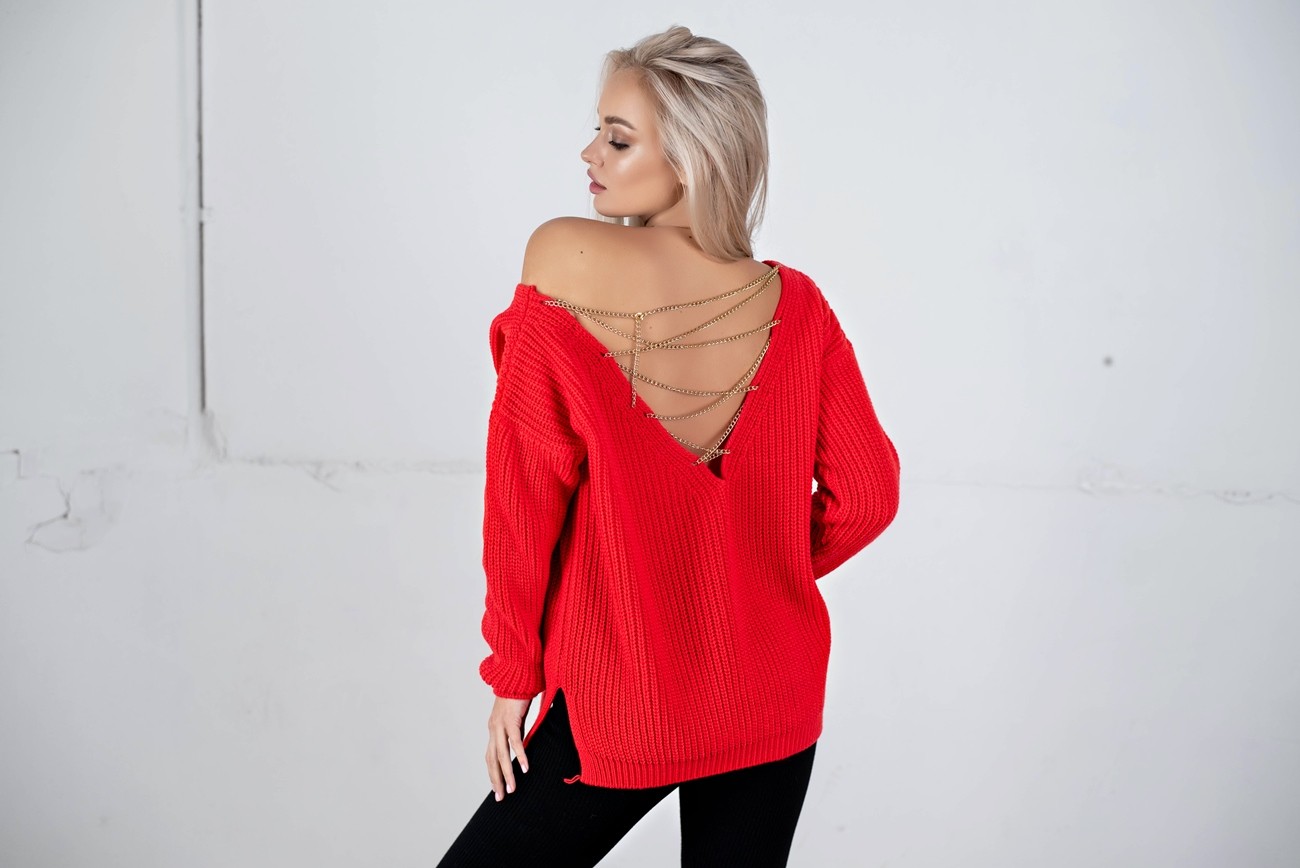 Светр з відкритою спиною oversize - машинне в'язання - "Кайлі" - Червоний