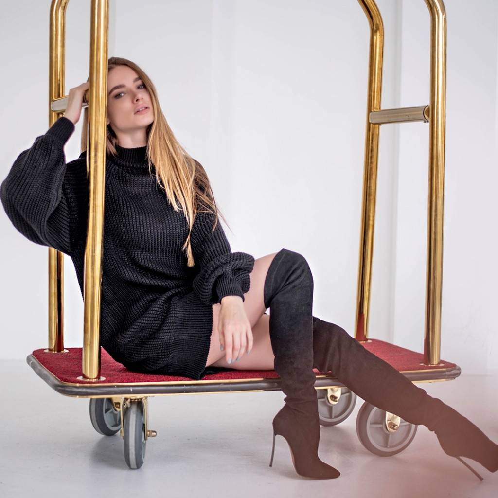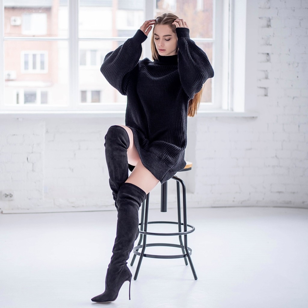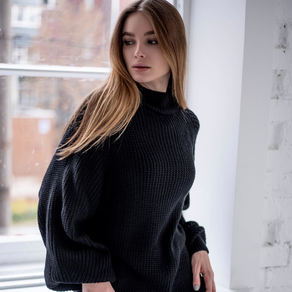 Жіноча туніка з високим горлом - Вовна - Акрил - "Міра" чорний
