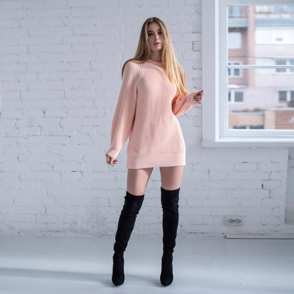 Жіноча туніка з високим горлом - Вовна - Акрил - "Мира" персик