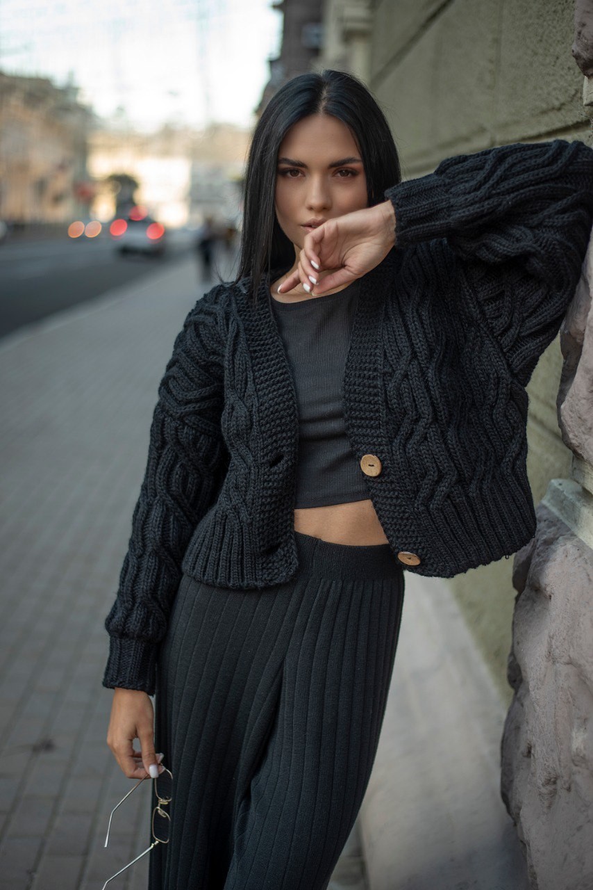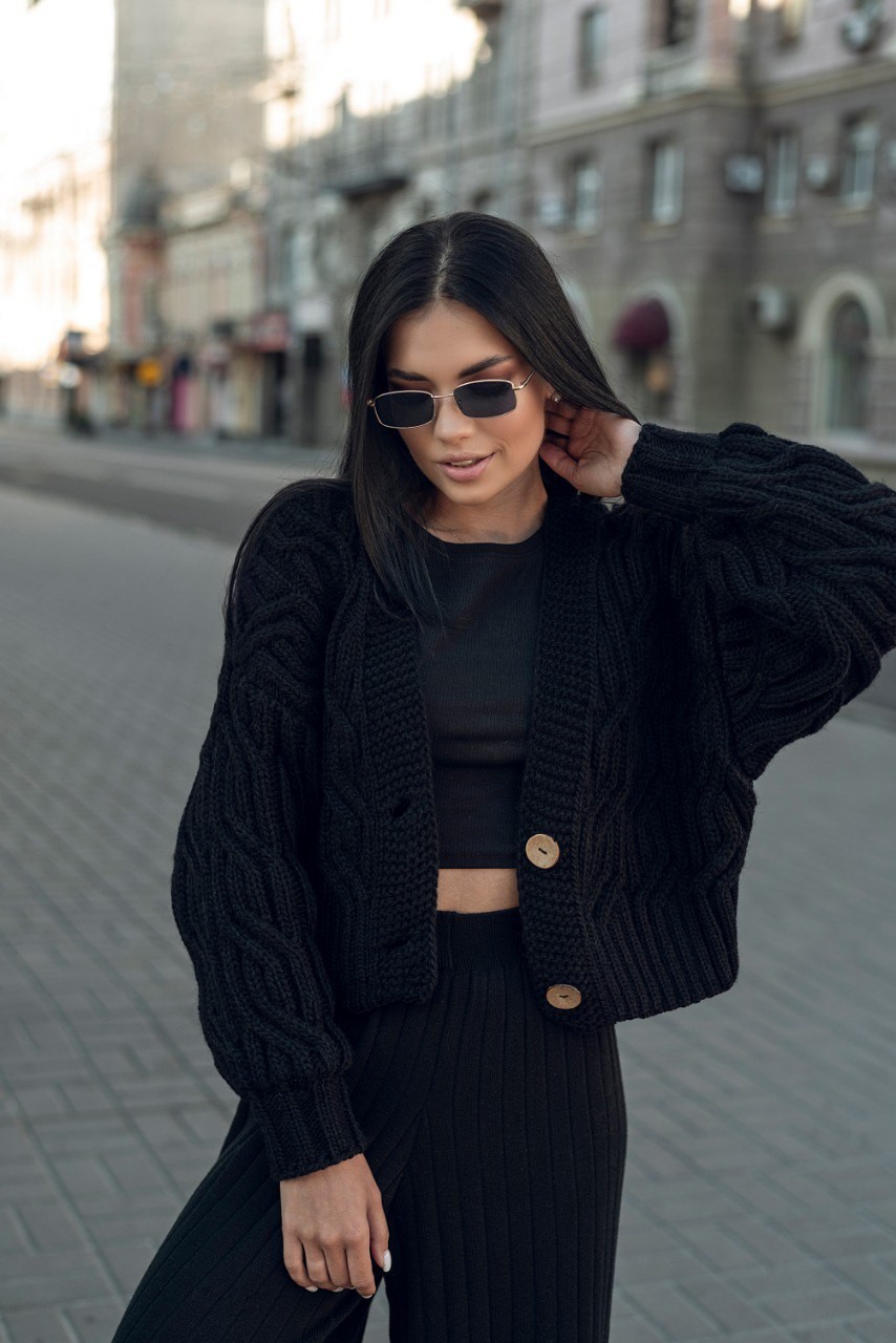 Укорочений кардиган із гудзиками - one size - "FLORA" чорний