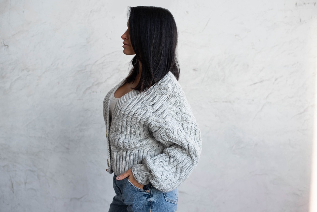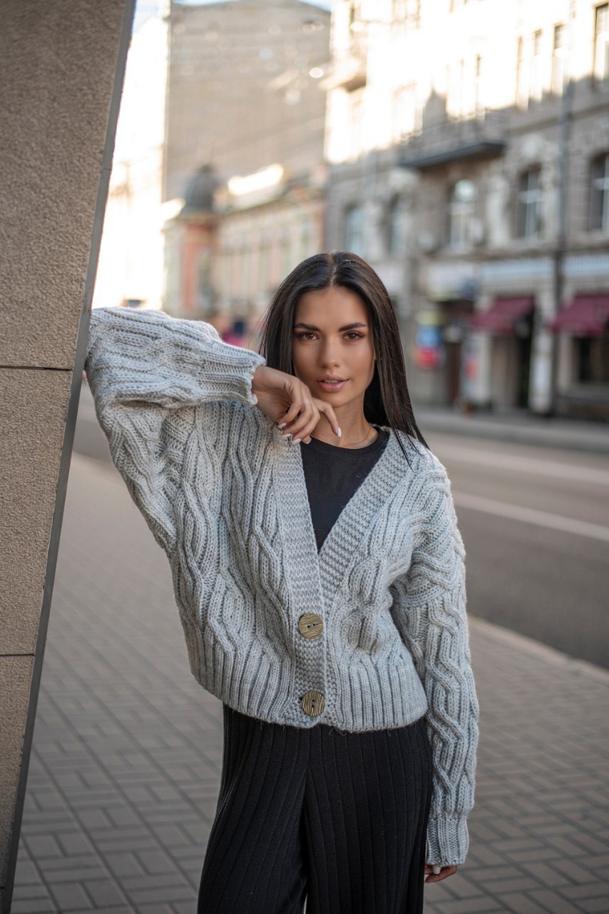 Укорочений кардиган із гудзиками - one size - "FLORA" - Сірий