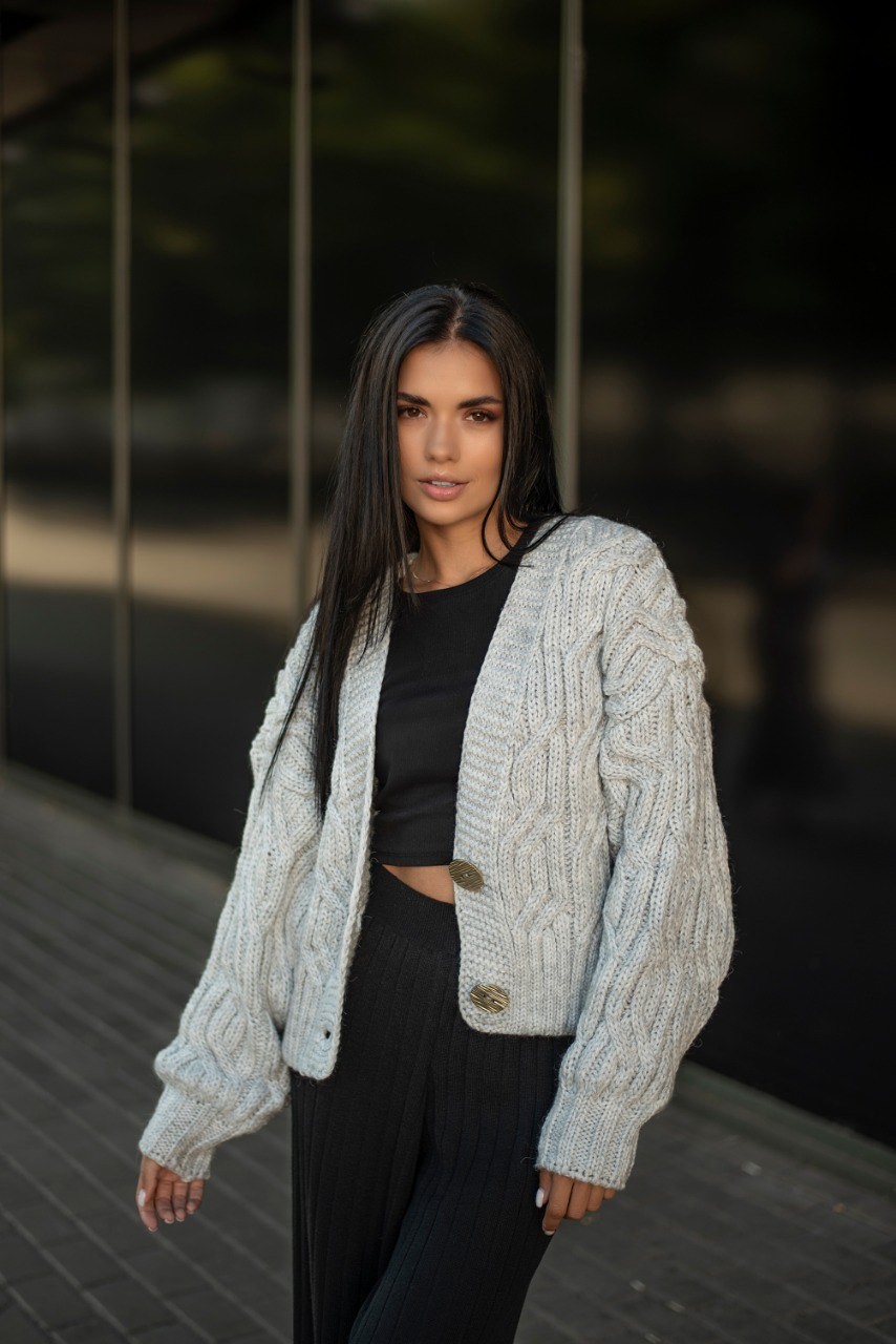 Будьте першим, хто залишить відгук про "Укорочений кардиган із гудзиками - one size - "FLORA" - Сірий"